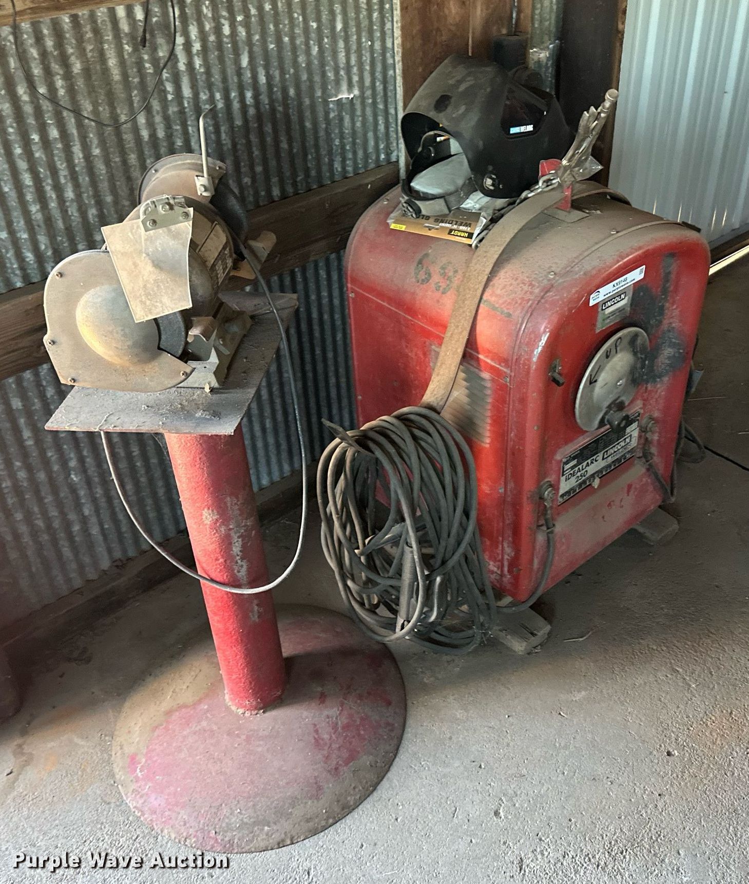 Purple Wave is selling a used Tools in Kansas. This item is a Tools with the following: Lincoln Idealarc 250 welder, Volts: 230/460, Phase: Three, Bench grinder, Volts: 110/220, Phase: Single, Metal table, 31" x 37", Vise, Welding rods