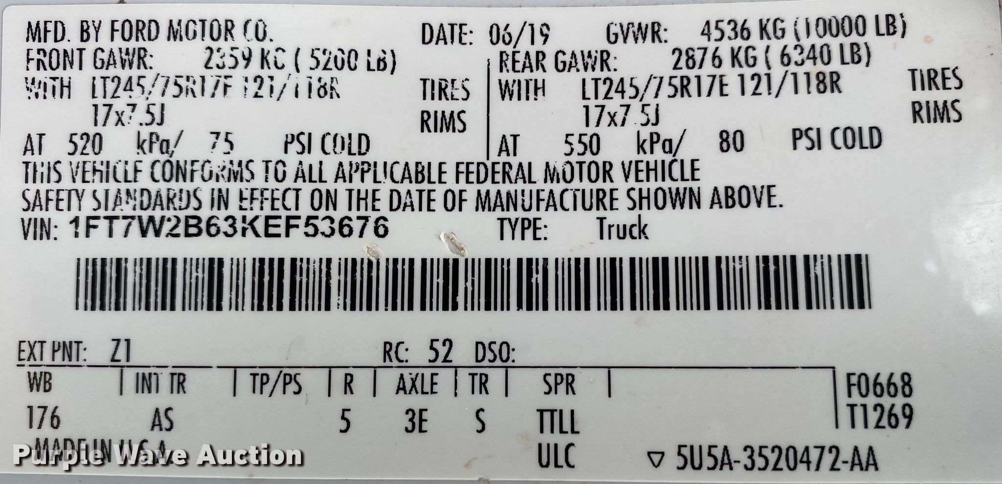 Purple Wave is selling a used 3/4 or 1 Ton Pickup or Van in Oklahoma. This item is a 2019 Ford F250 Super Duty Crew Cab flatbed pickup truck with the following: Miles: 147,713 on odometer, VIN: 1FT7W2B63KEF53676