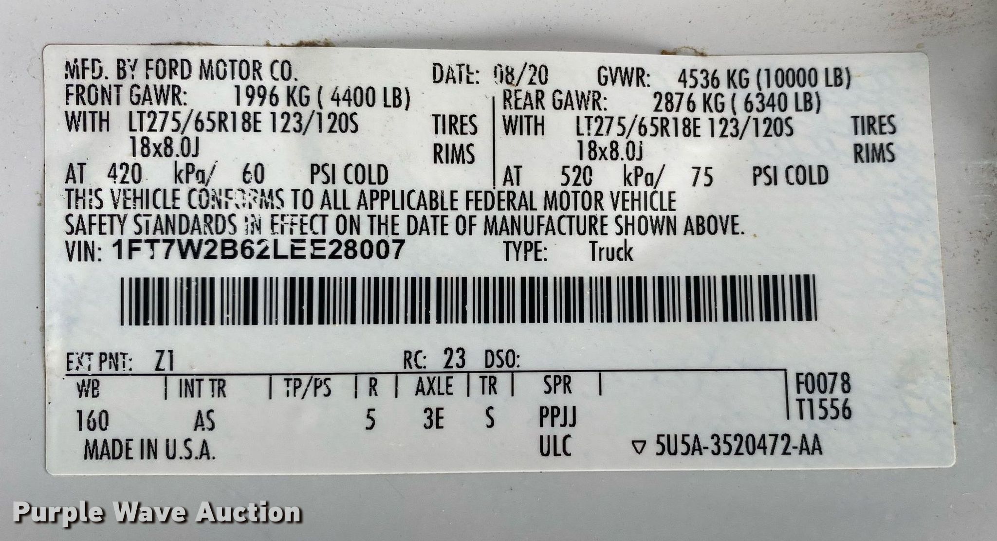 Purple Wave is selling a used 3/4 or 1 Ton Pickup or Van in Oklahoma. This item is a 2020 Ford F250 Super Duty Crew Cab pickup truck with the following: Miles: 112,286 on odometer, VIN: 1FT7W2B62LEE28007