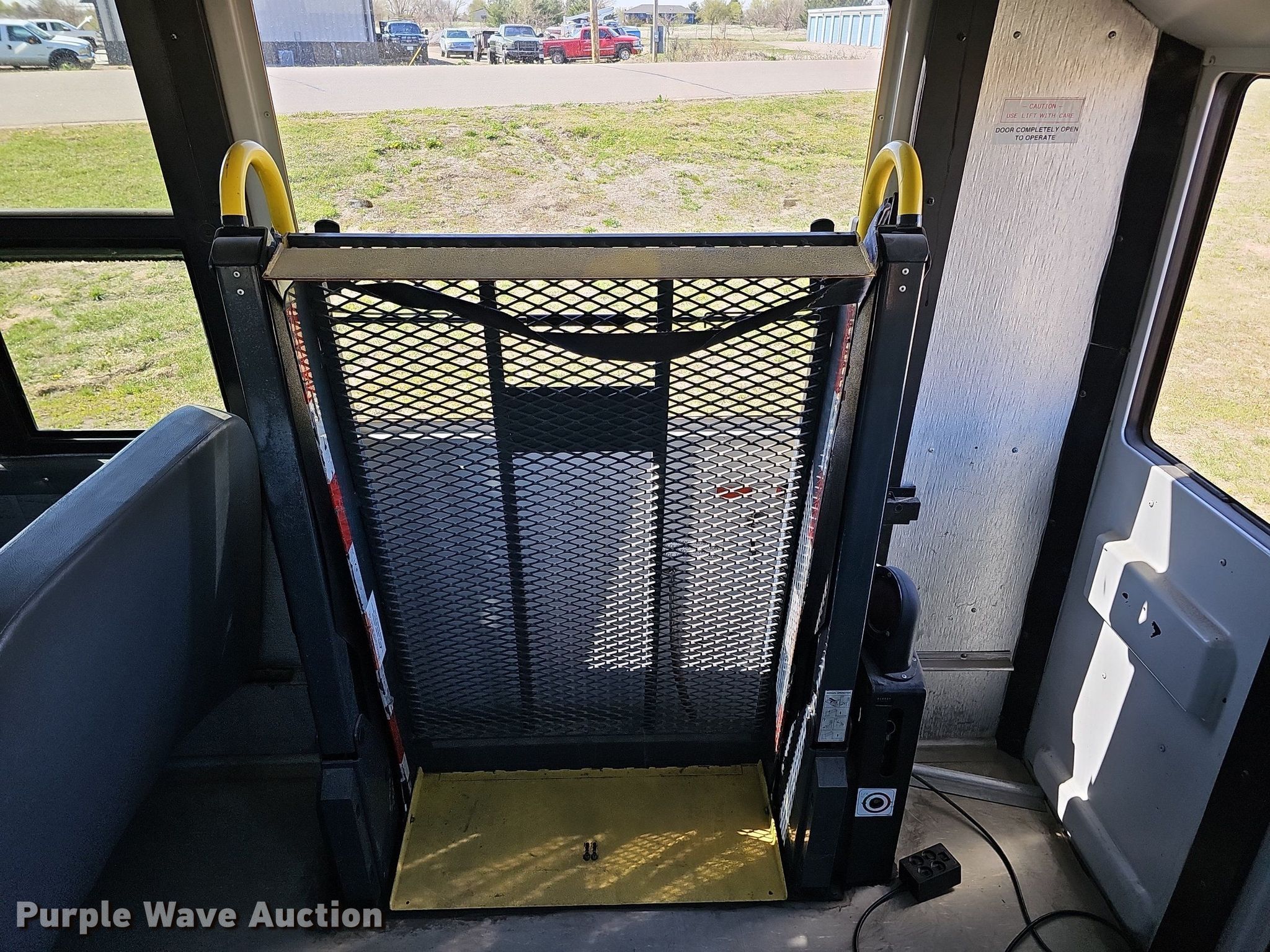 2007 Thomas Built Saf-T-Liner C2 school bus. Miles: 193,829 on odometer, Hours: 12,420 on meter, VIN: 4UZABRDC67CW08469. Engine Caterpillar C7, Displacement: 7.2L, Cylinders: 6, Fuel type: Diesel. Transmission Automatic. Chassis Axles: Single, Suspension: Air, Brakes: Air, GVWR: 29,000 lbs. Interior Heat, Heated mirrors, Cruise control, Auxiliary controls, Brake controller, Electric passenger sliding door, Passengers: 60, Wheelchair lift. Tires Size: 11R22.5. Notes Windshield chipped or cracked. Nebraska title. Title distribution may be delayed up to 14 days from verification of funds. Nebraska/Central Equipment. 112 South Apollo Street. Alda, NE 68810