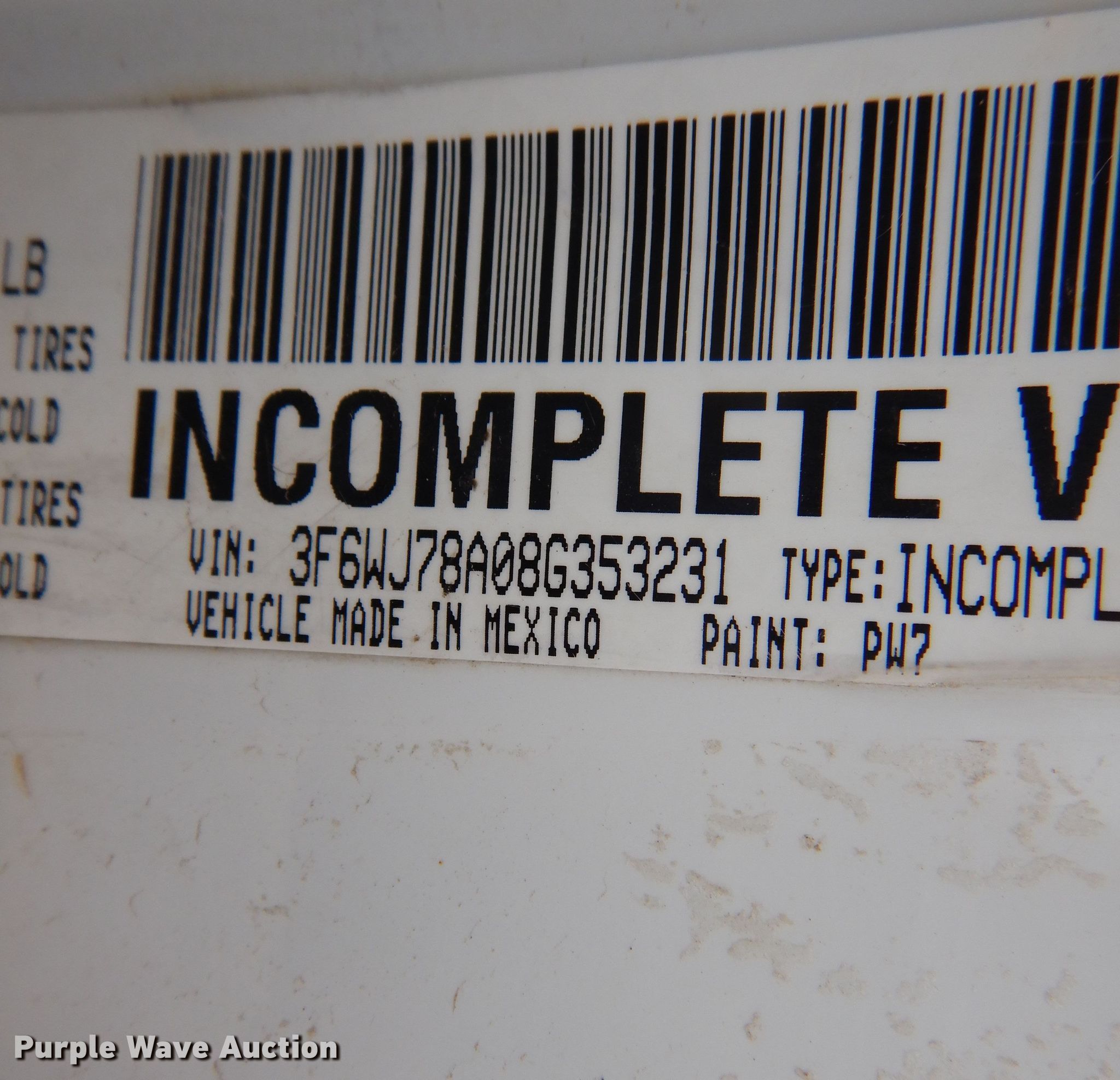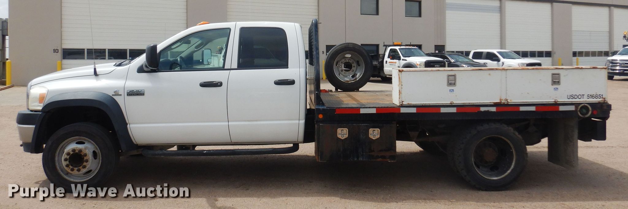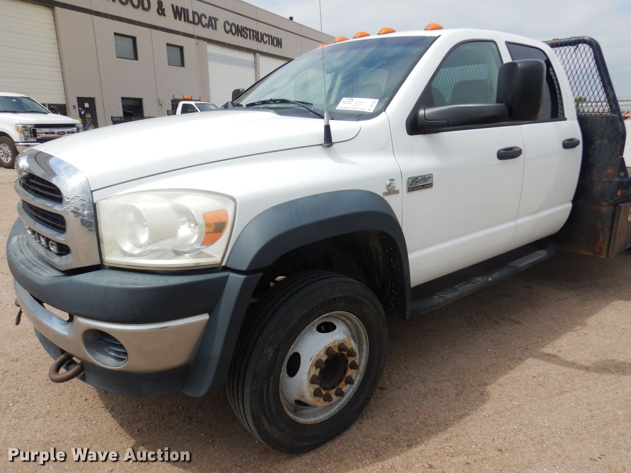 2008 Sterling Bullet 5500 Quad Cab flatbed truck. Miles: 67,389 on odometer, VIN: 3F6WJ78A08G353231, Unit #: 05-06C. Engine Cummins, Displacement: 6.7L, Cylinders: 6, Fuel type: Diesel. Transmission Automatic. Chassis Axles: Single, Suspension: Spring, Brakes: Hydraulic. Interior AC, Heat, Heated mirrors, Power windows, Power locks, Cruise control. Features Flatbed 12' L x 96" W. Tires Size: 225/70R19.5. Kansas title. Sherwood Construction Company. 3219 W May St. Wichita, KS 67213