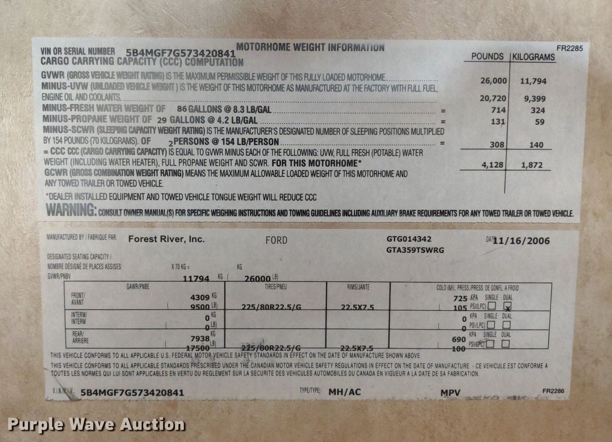 - GVWR: 26,000 lbs
