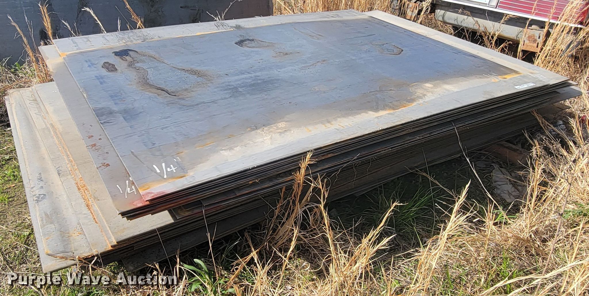 Purple Wave is selling a used Building Materials in Oklahoma. This item is a (10) sheets of metal with the following: (5) 1/4", Approx. 5' x 7', (5) 3/8", Approx. 5' x 7'