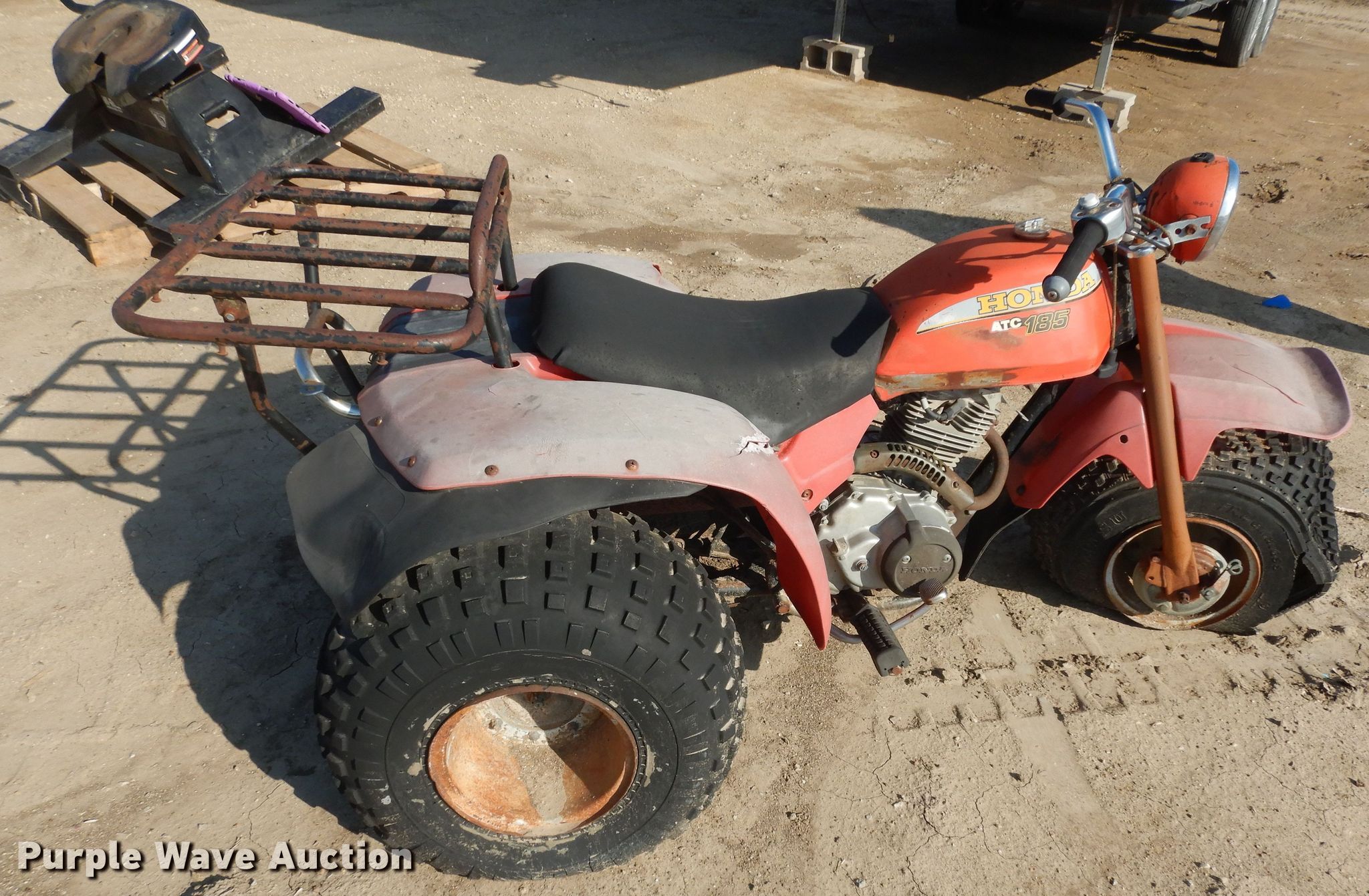 Purple Wave is selling a used ATV in Kansas. This item is a Honda ATC185 ATV with the following: VIN: TB01T2014555, Gas engine, Pull start, 25x12.00-9 tires, Flat tires, Transmission jack, Unknown operating conditions