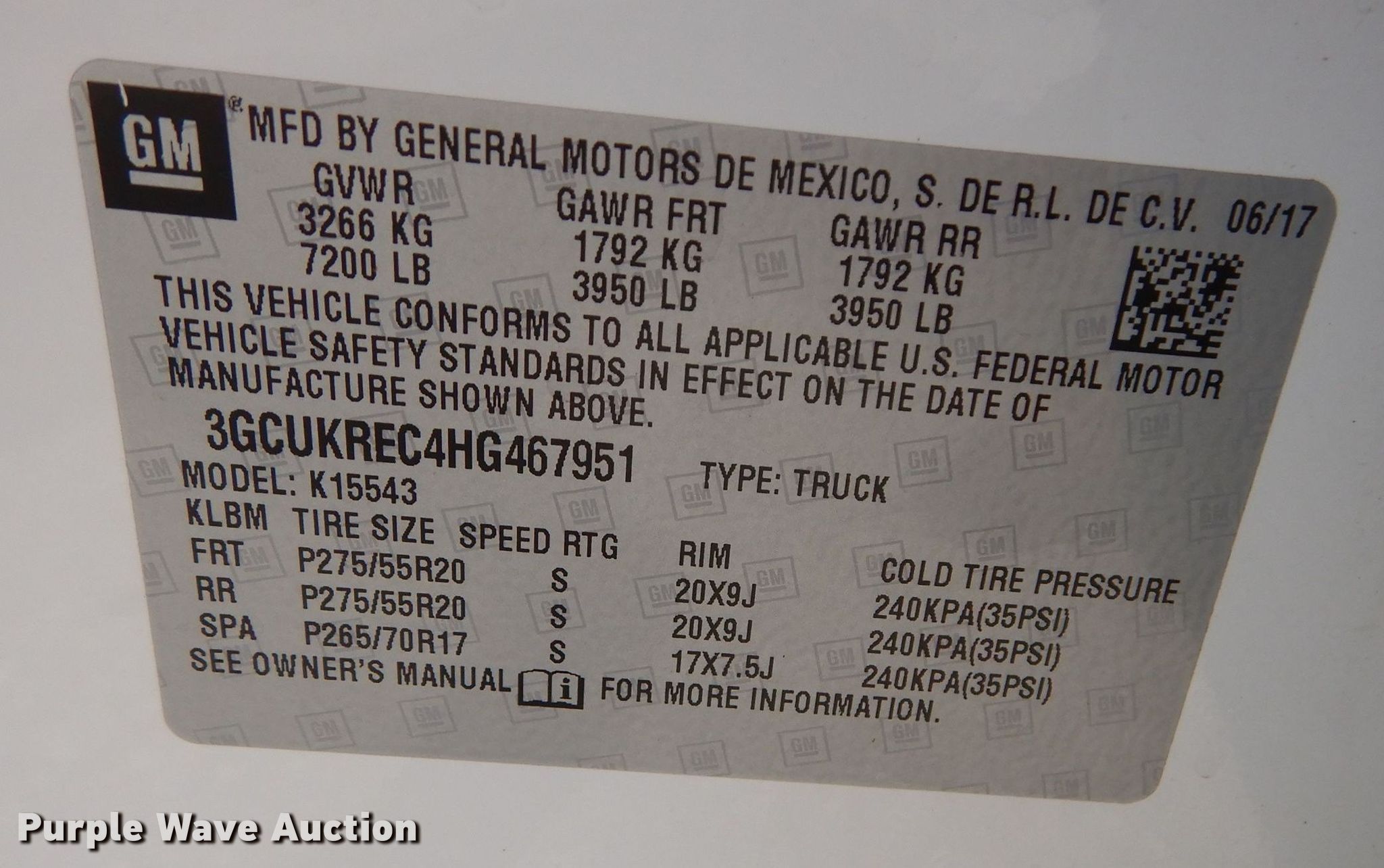 2017 Chevrolet Silverado 1500 Crew Cab pickup truck. Miles: 153,340 on odometer, VIN: 3GCUKREC4HG467951. Engine Displacement: 5.3L V8 OHV, Cylinders: 8, Fuel type: Gas. Transmission Automatic, Four wheel drive. Interior AC, Heat, Seat: Power driver, Power windows, Power locks, Cruise control. Tires Size: 275/55R20. Notes Dash warning indicator: Check engine. View repairs. Kansas title. Overbrook, KS 66524