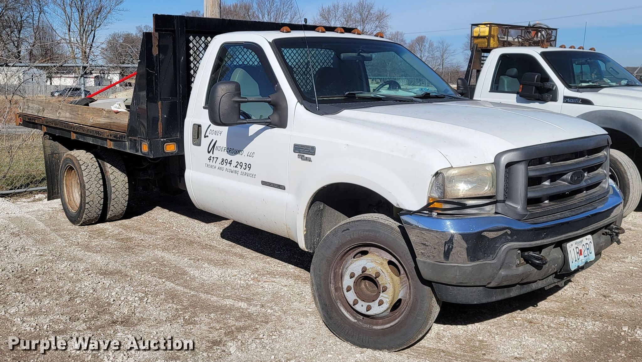 This 2002 Ford F550 Super Duty flatbed truck will sell to the highest bidder regardless of price.