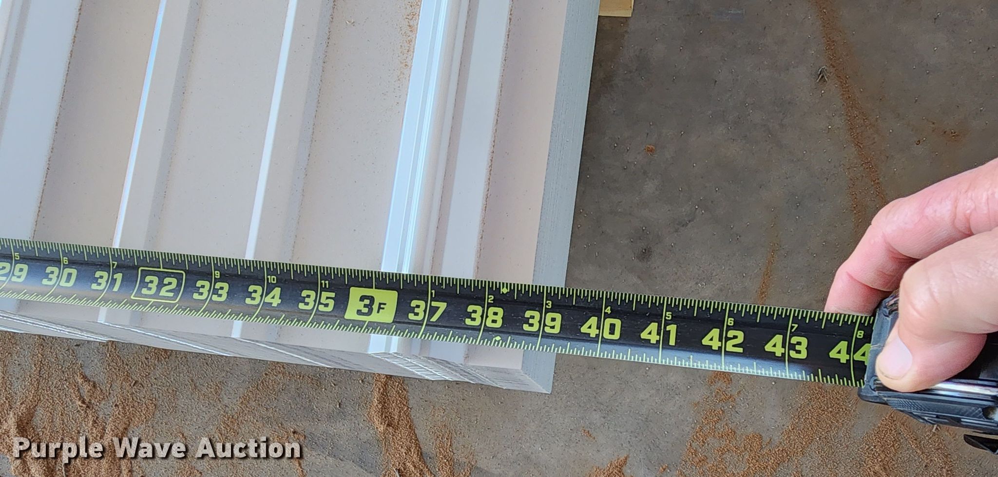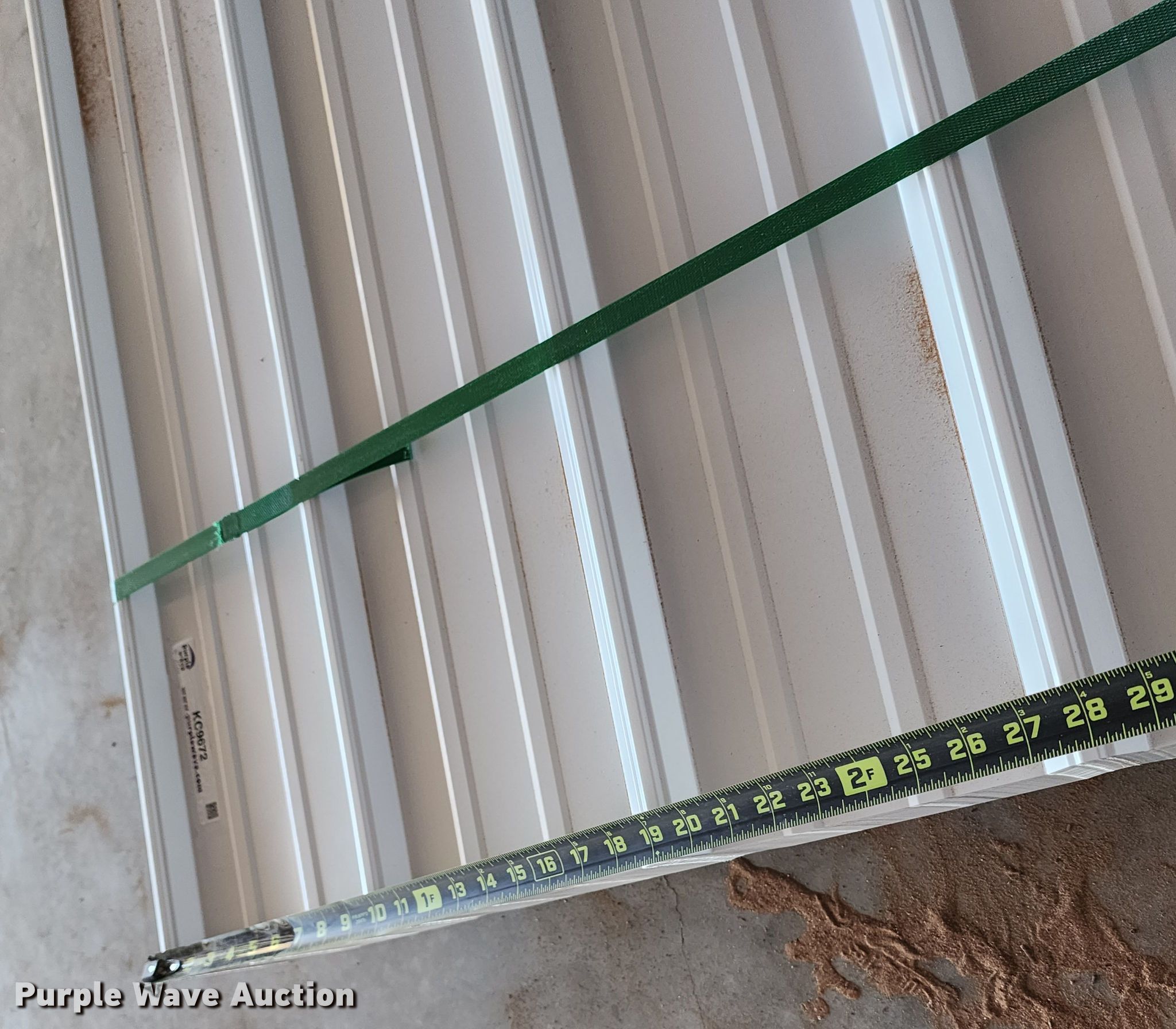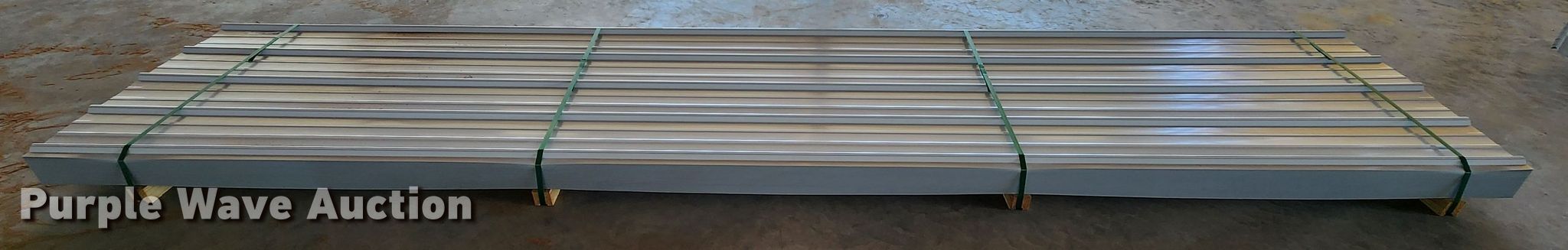 Purple Wave is selling a used Building Materials in Texas. This item is a (170) sheets of 2023 Doerkson Metal Components metal siding/roofing with the following: 16'L x 36"W overlap coverage, AG panel profile, 29 gauge, Color: White, Possible blemishes
