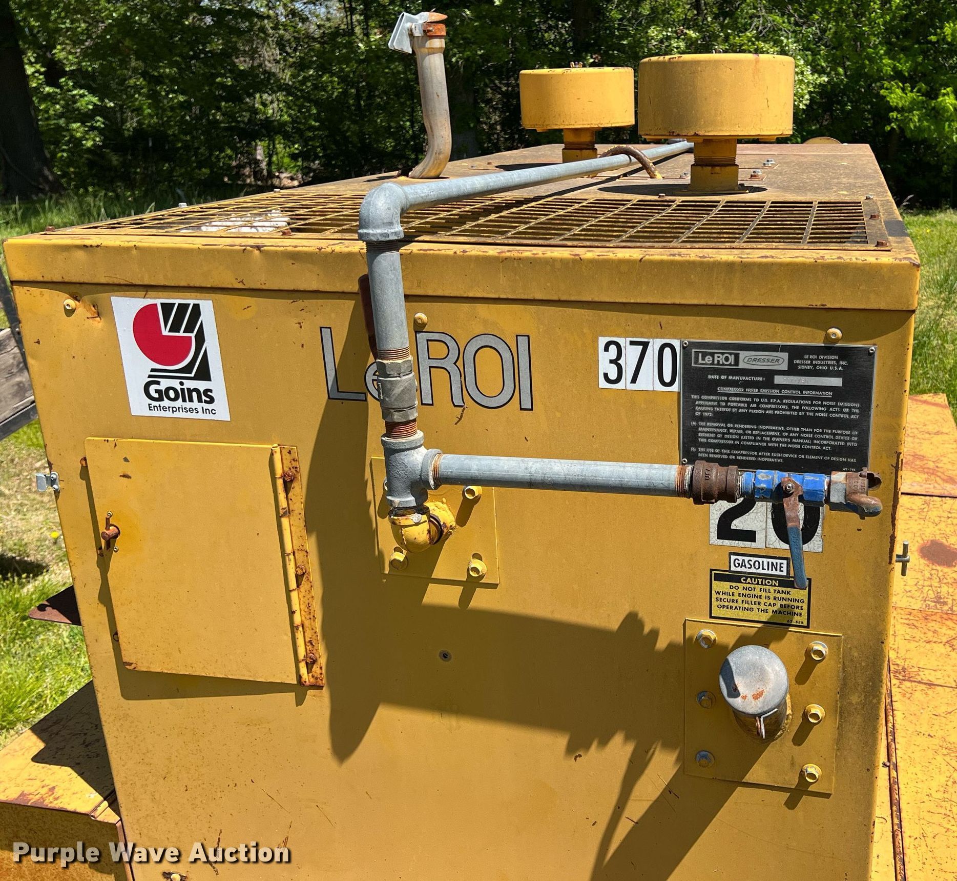 Lerori 185 air compressor. Serial: 2077X80. Engine Ford, Cylinders: 6, Fuel type: Gas. Features Air compressor CFM: 185. Trailer Axles: Single, Tire size: 7.00-15. Notes Unknown operating condition. Transfer of ownership documentation will be a bill of sale. Goins Enterprises/Constellation Service. 3255 North County Lane 252. Joplin, MO 64801