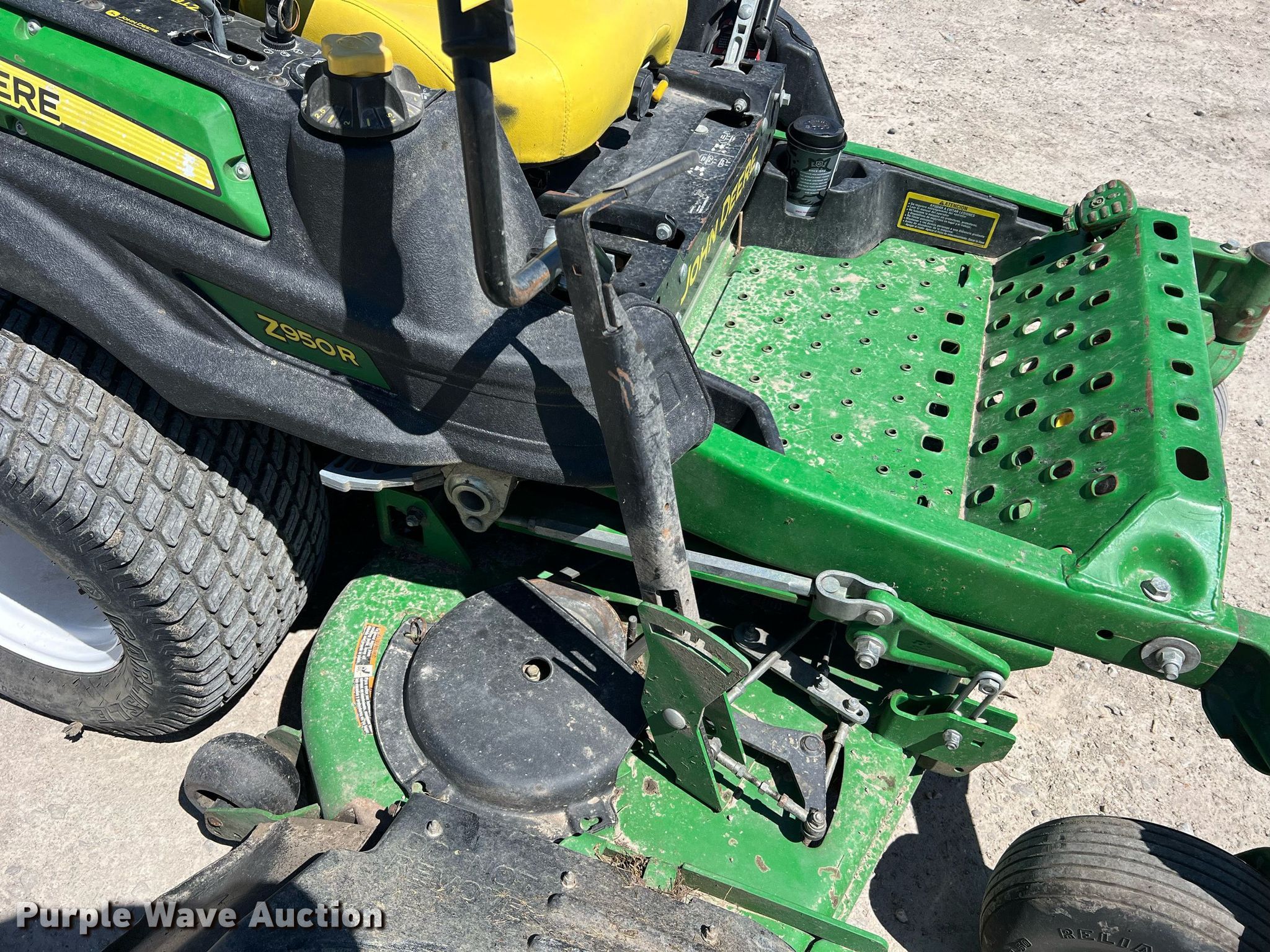 John Deere Z950R ZTR lawn mower. Hours: 2,483 on meter, Cutting width: 60", Serial: 1TC950RGPGT040998. Engine Kawasaki, Cylinders: 2, Fuel type: Gas. Transmission Hydrostatic. Chassis PTO. Tires Front: 13x6.50-6/4.50, Rear: 24x12.00-12. Notes Possible engine issues. Columbia Landcare, LLC.. 7105 West Henderson Road. Columbia, MO 65202