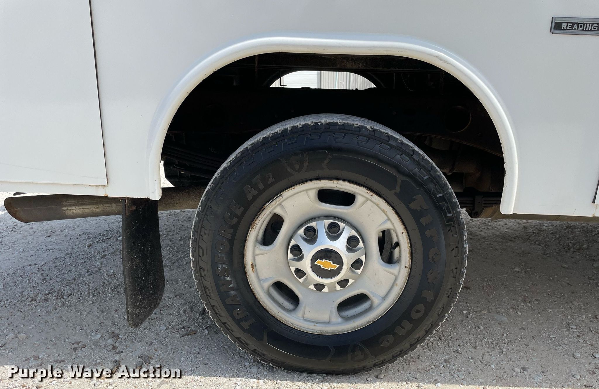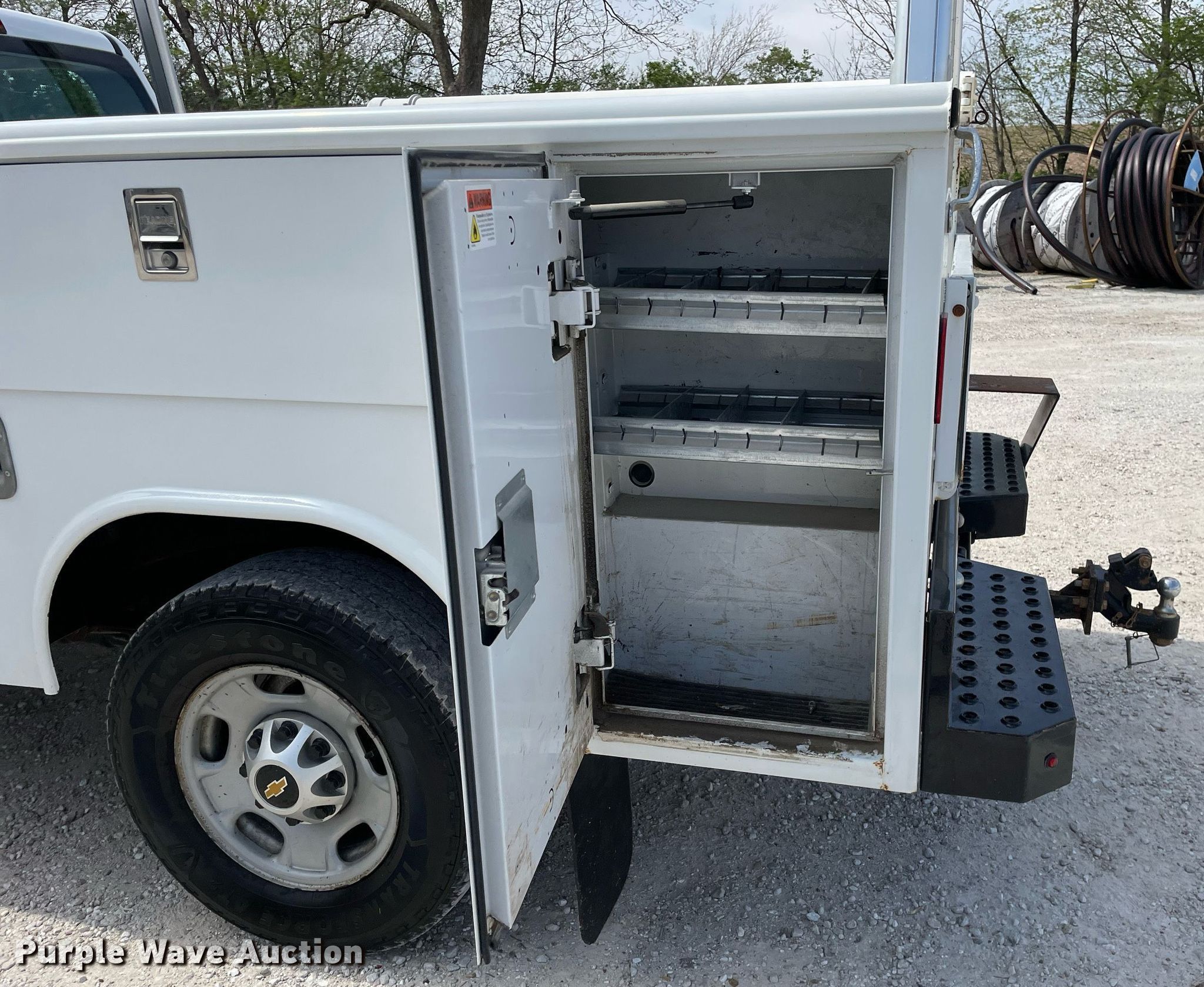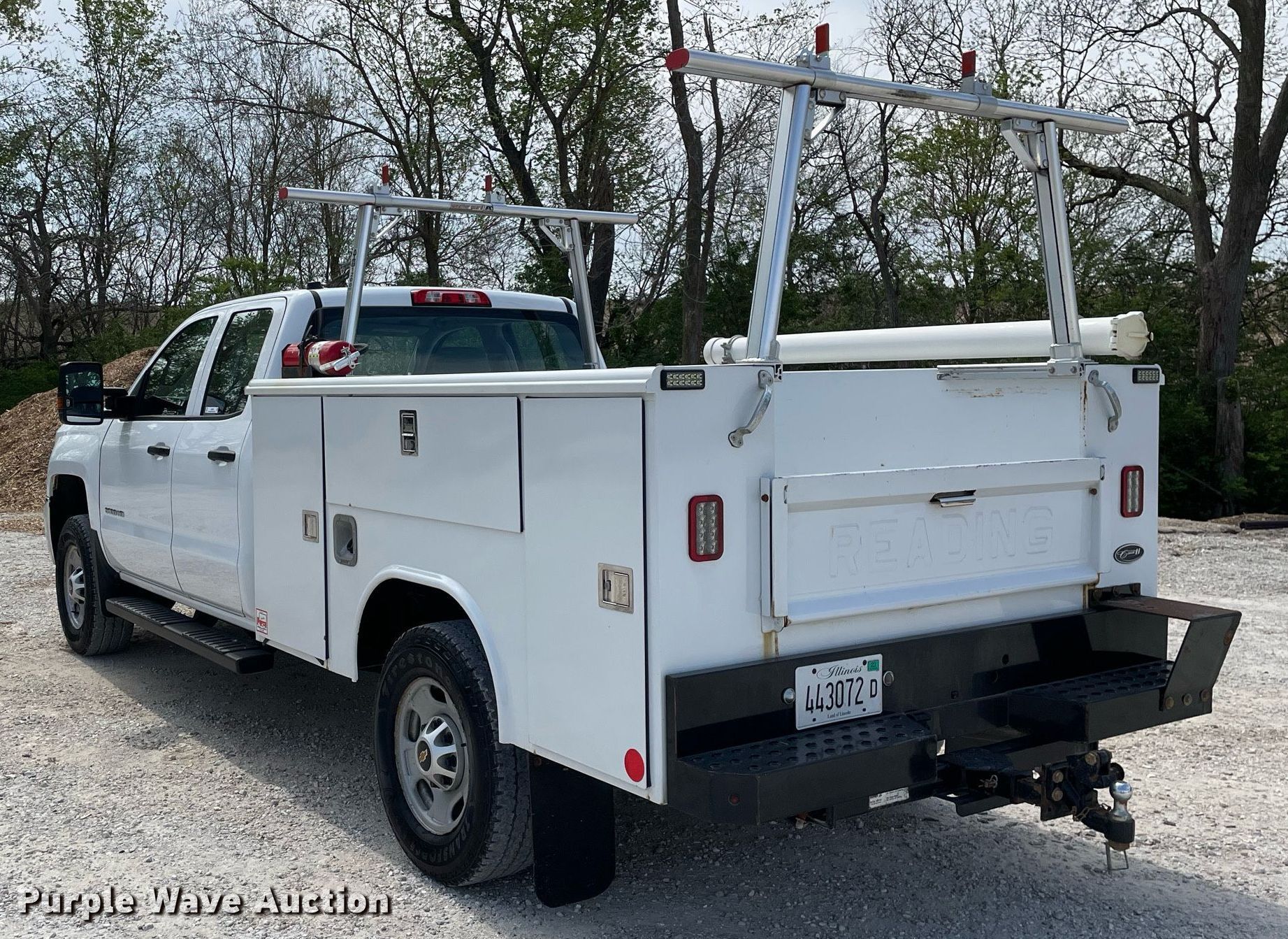 2018 Chevrolet Silverado 2500HD Double Cab utility bed pickup truck. Miles: 158,446 on odometer, Hours: 5,413 on meter, VIN: 1GC2KUEG8JZ209287. Engine Displacement: 6.0L V8 OHV, Cylinders: 8, Fuel type: Gas. Transmission Automatic, Four wheel drive. Interior AC, Heat, Heated mirrors, Power windows, Power locks, Cruise control, Backup camera. Features Utility bed Reading CS098S11211, 8' 2" L x 79" W. Tires Size: 265/70R17. Notes Rear seats missing. Illinois title. Title distribution may be delayed up to 14 days from verification of funds. Illinois Electrical Coop. 2 South Main Street. Winchester, IL 62694