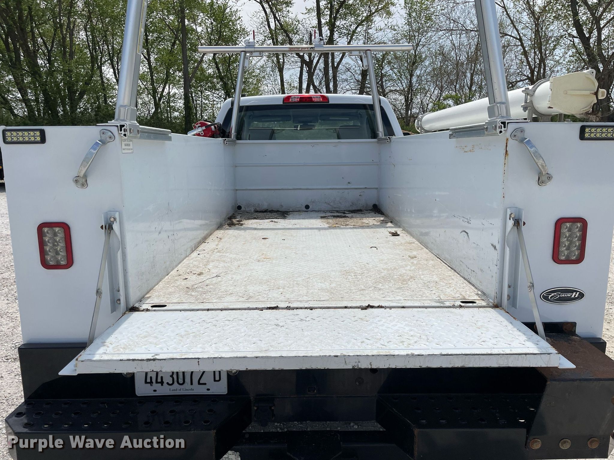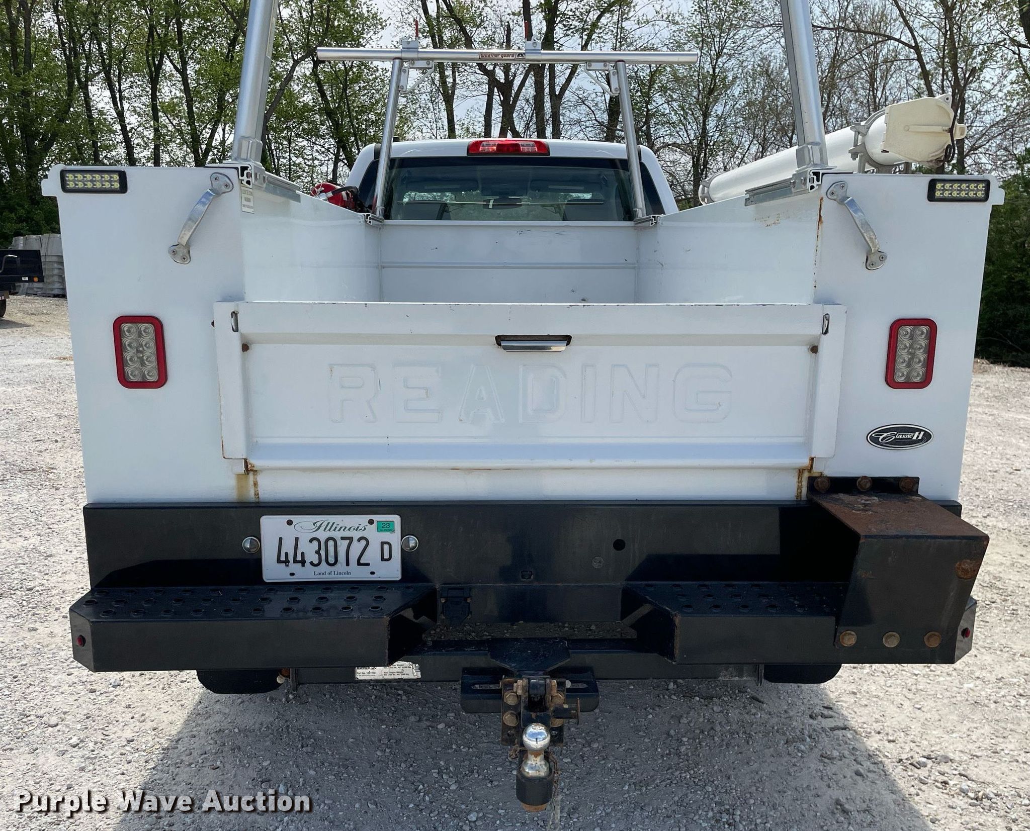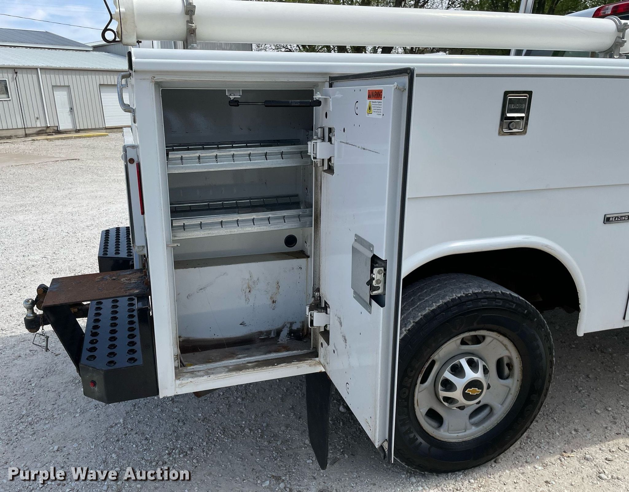 2018 Chevrolet Silverado 2500HD Double Cab utility bed pickup truck. Miles: 158,446 on odometer, Hours: 5,413 on meter, VIN: 1GC2KUEG8JZ209287. Engine Displacement: 6.0L V8 OHV, Cylinders: 8, Fuel type: Gas. Transmission Automatic, Four wheel drive. Interior AC, Heat, Heated mirrors, Power windows, Power locks, Cruise control, Backup camera. Features Utility bed Reading CS098S11211, 8' 2" L x 79" W. Tires Size: 265/70R17. Notes Rear seats missing. Illinois title. Title distribution may be delayed up to 14 days from verification of funds. Illinois Electrical Coop. 2 South Main Street. Winchester, IL 62694