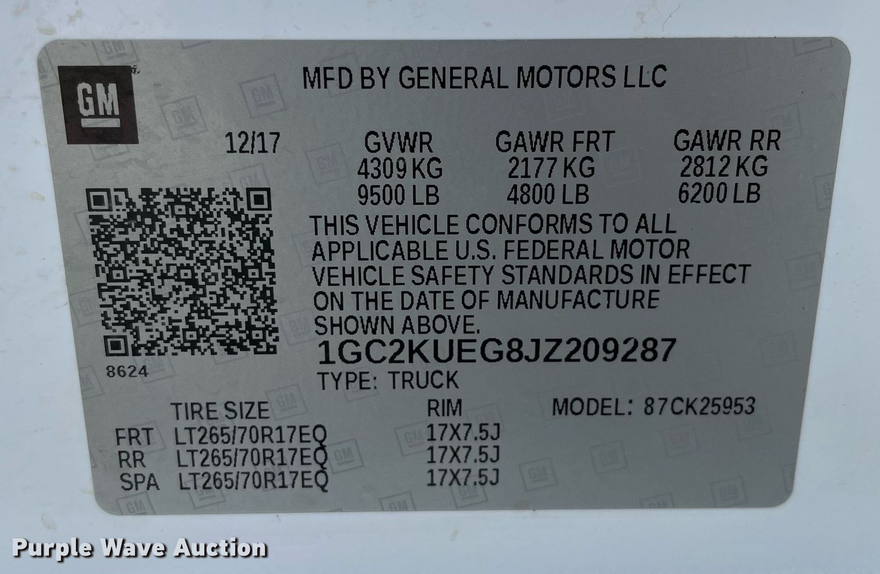 Purple Wave is selling a used 3/4 or 1 Ton Pickup or Van in Illinois. This item is a 2018 Chevrolet Silverado 2500HD Double Cab utility bed pickup truck with the following: Miles: 158,446 on odometer, Hours: 5,413 on meter, VIN: 1GC2KUEG8JZ209287