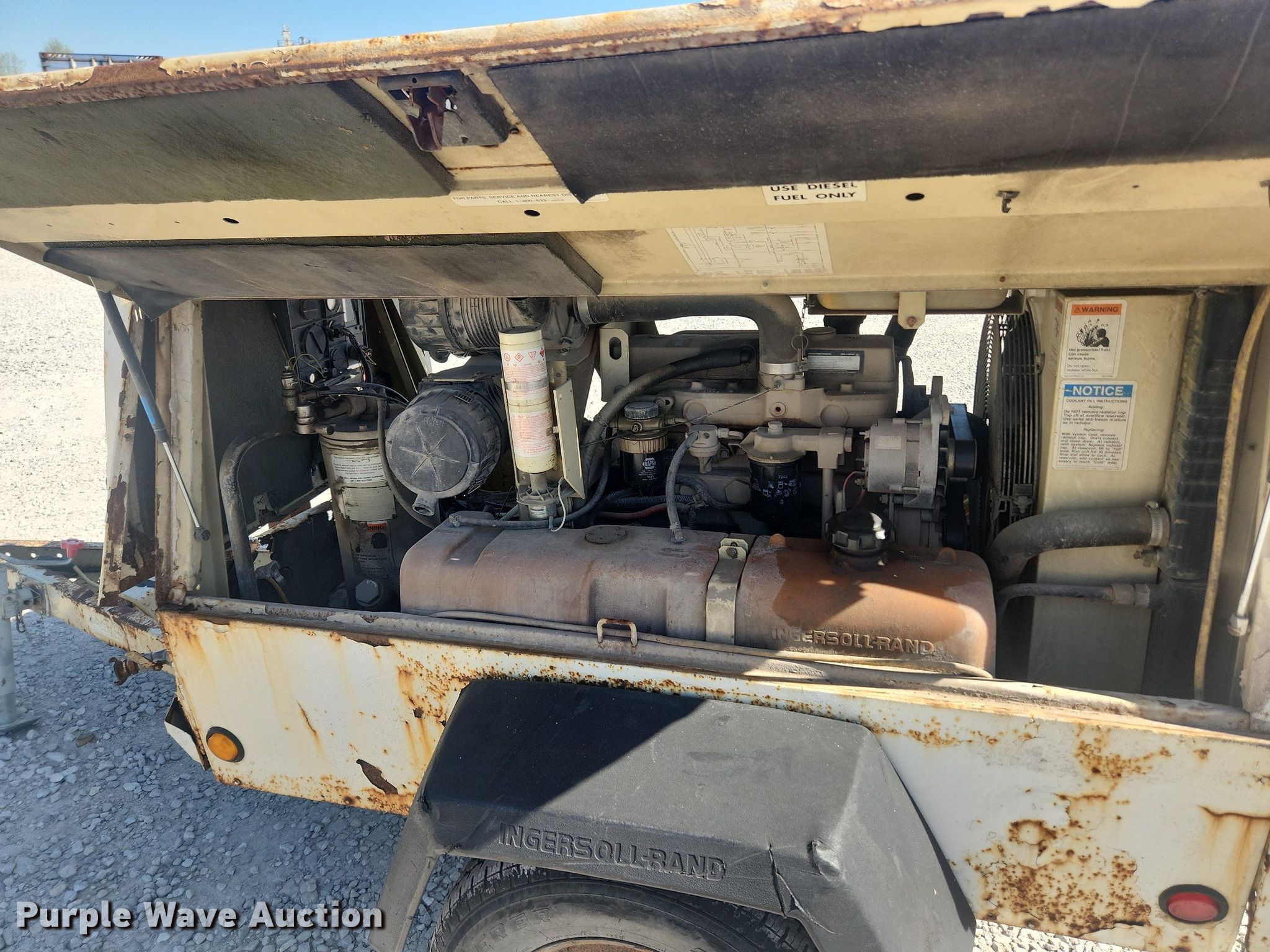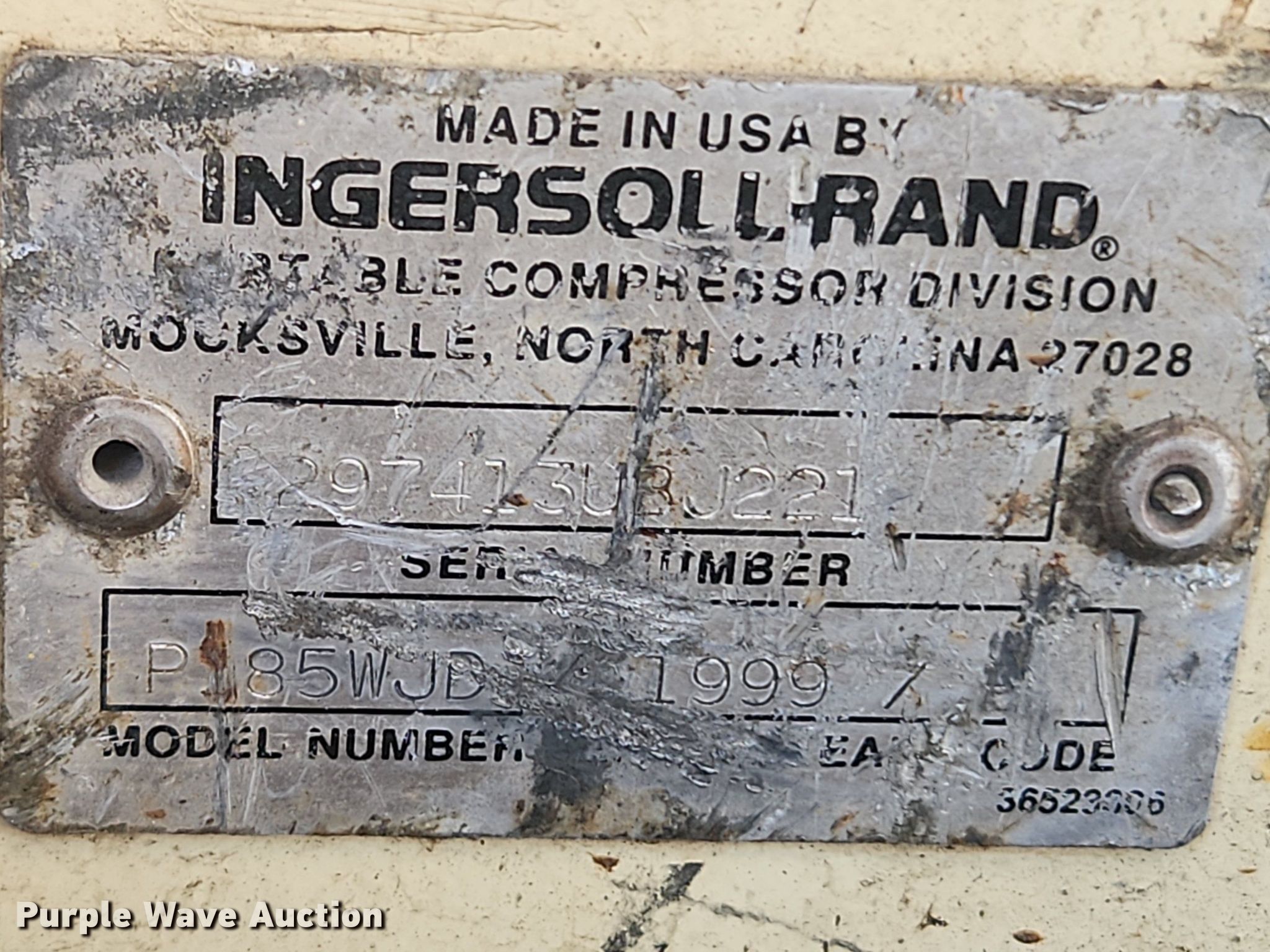Purple Wave is selling a used Air Compressor in Missouri. This item is a 1999 Ingersoll Rand P185WJD air compressor with the following: Hours: 745 on meter, Serial: 297413URJ221