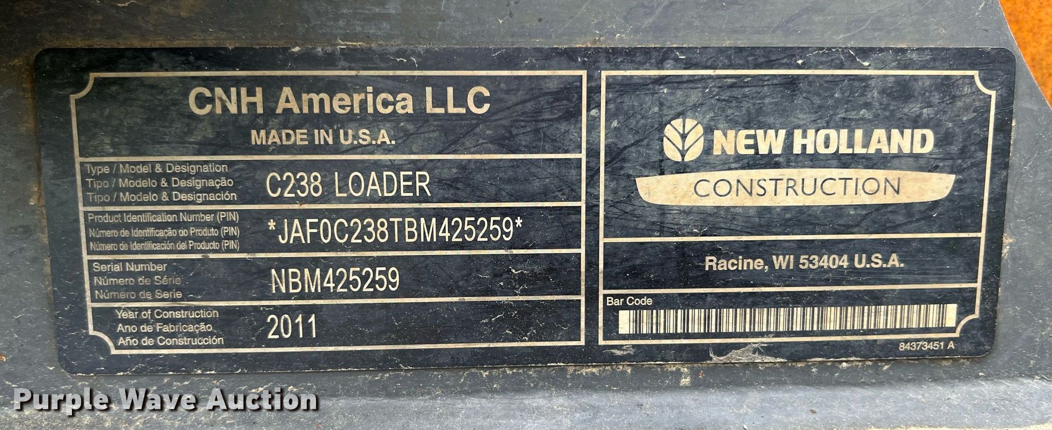 Purple Wave is selling a used Tracked Skid Steer Loader in Kansas. This item is a 2012 New Holland C238 skid steer loader with the following: Hours: Unknown, Serial: NBM425259