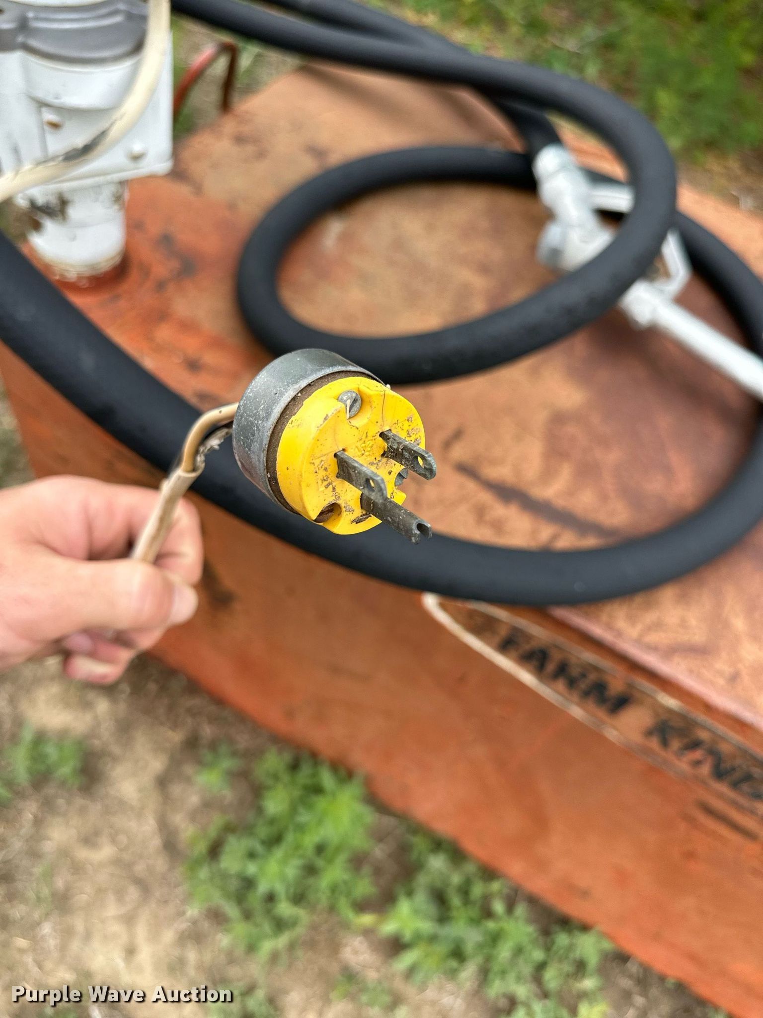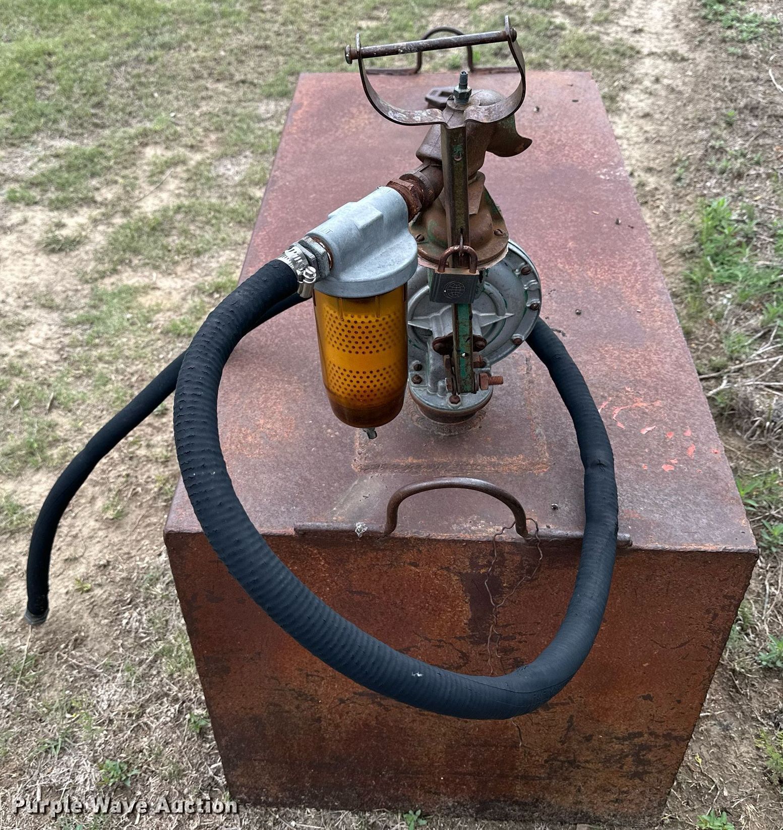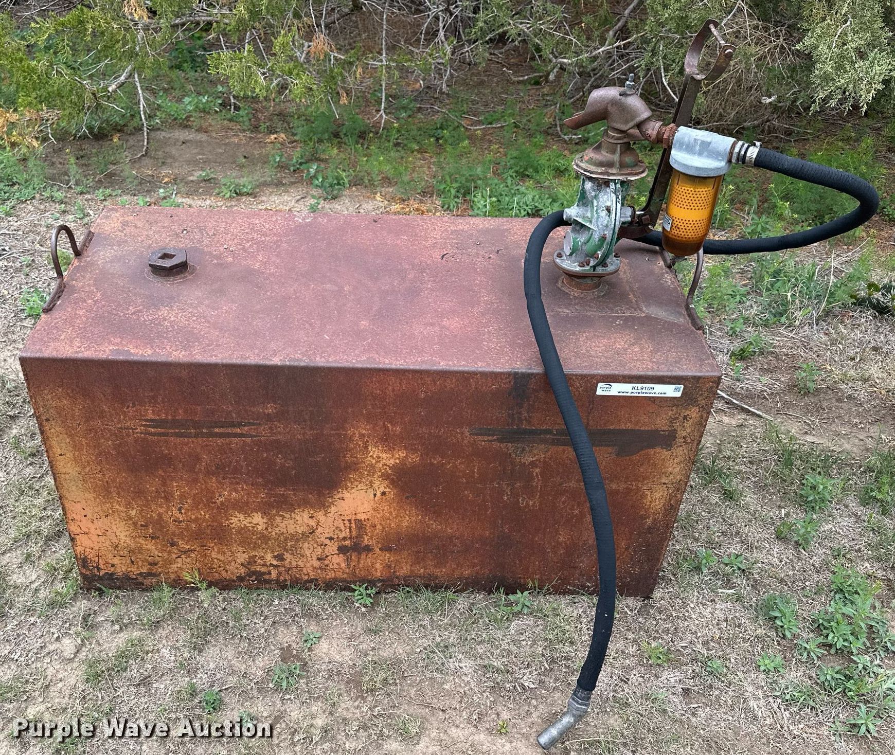 Purple Wave is selling a used Fuel and Lube in Kansas. This item is a (2) fuel tanks with the following: Fuel tank, Dimensions: 4' x 2' x 2', Approx. 110 gallons, Previously used for gas, Farm King fuel tank, Dimensions: 4' x 23" x 22", Approx. 100 gallons, Previously used for diesel