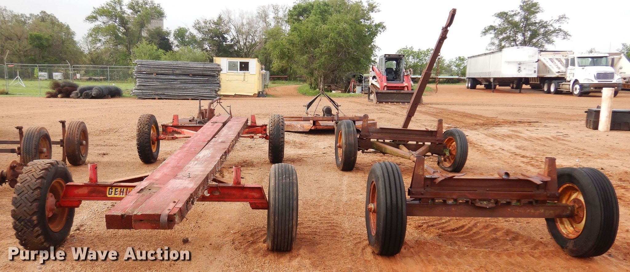 (2) running gears. Hehl 706. 11' 7" L, Tires: 7.00-15. Shop built 10' 2" L , Tires: 7.50-16. Notes Tire damaged. Murdock, KS 67111