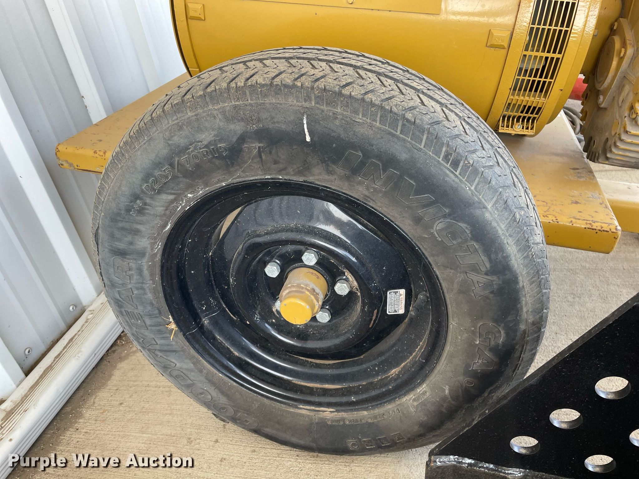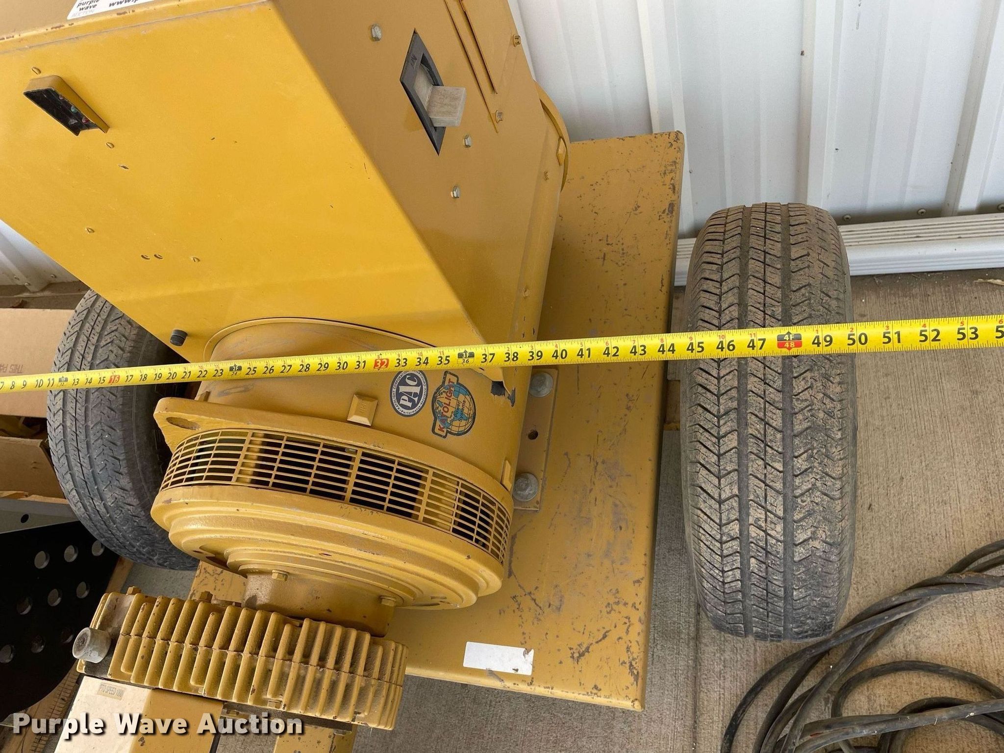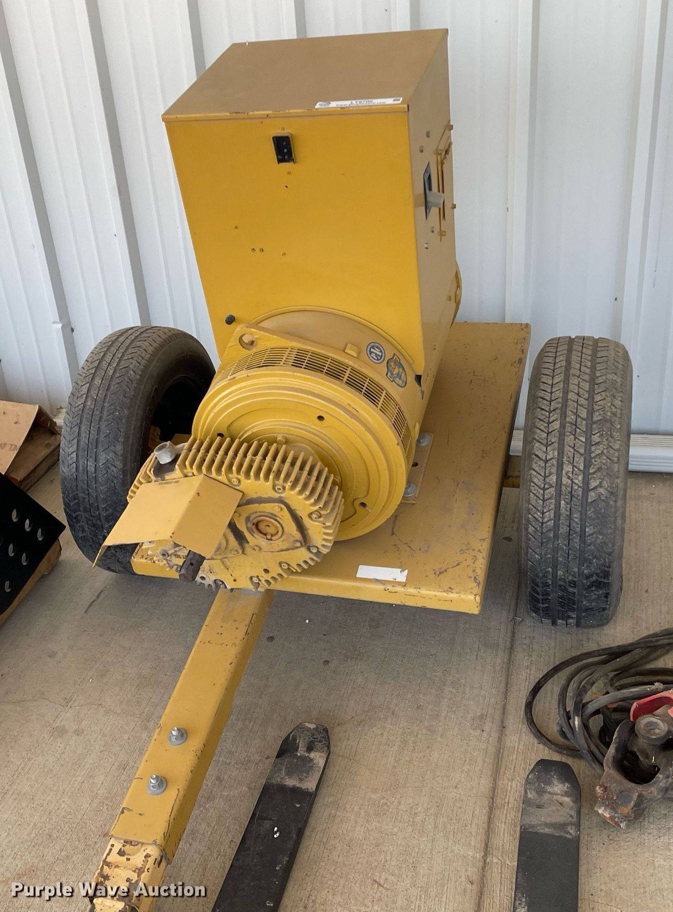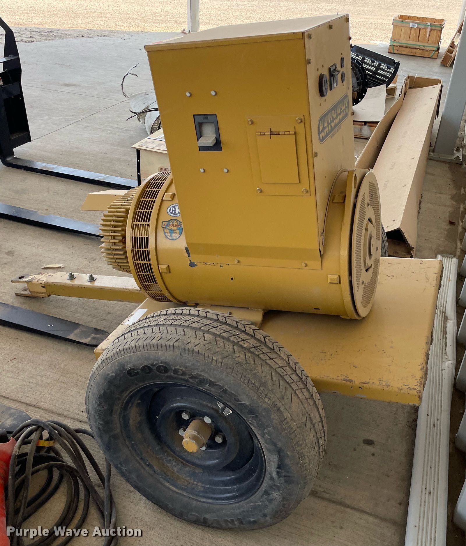 Katolight KLM3-85-1000 PTO generator. Serial: LM219085. Features kVA: 106, kW: 85, Phase: Three, Volts: 120/208, PTO: 1000. Trailer 70"L x 52"W, Axles: Single, Tire size: P205/70R15. Transfer of ownership documentation will be a bill of sale. KanEquip Inc.. 704 Kunkle Drive. Ellsworth, KS 67439