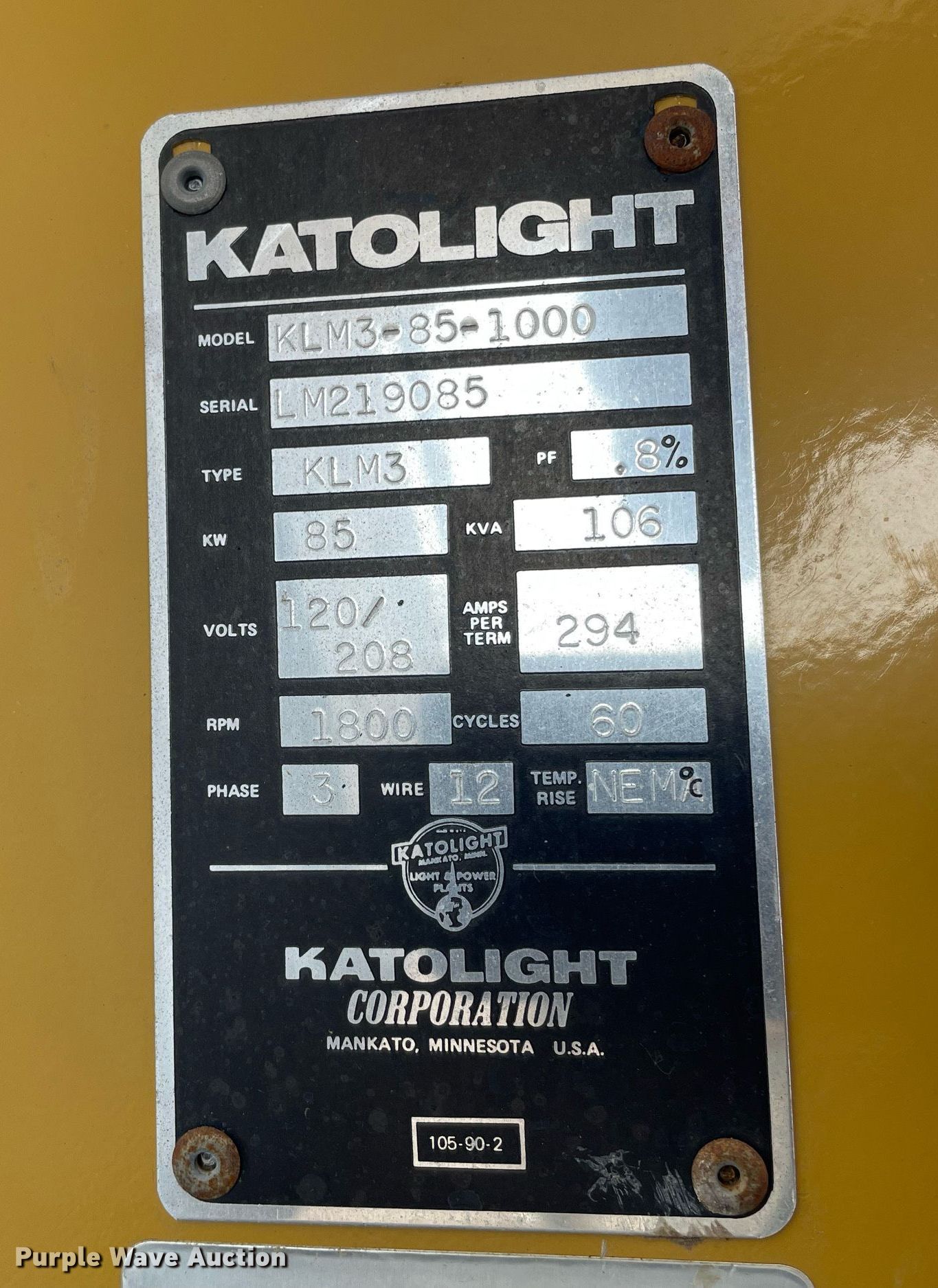 Purple Wave is selling a used Generator Set in Kansas. This item is a Katolight KLM3-85-1000 PTO generator with the following: Serial: LM219085