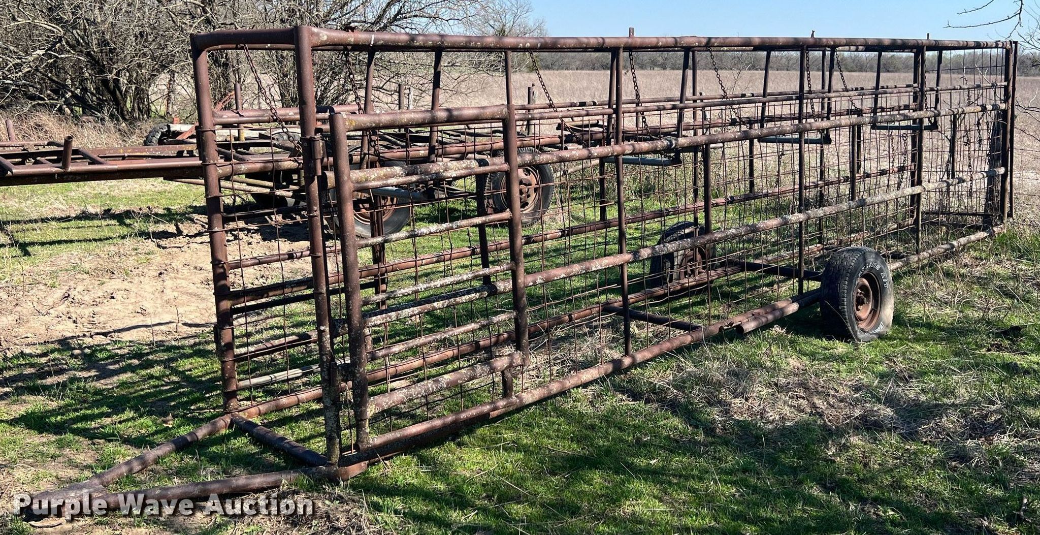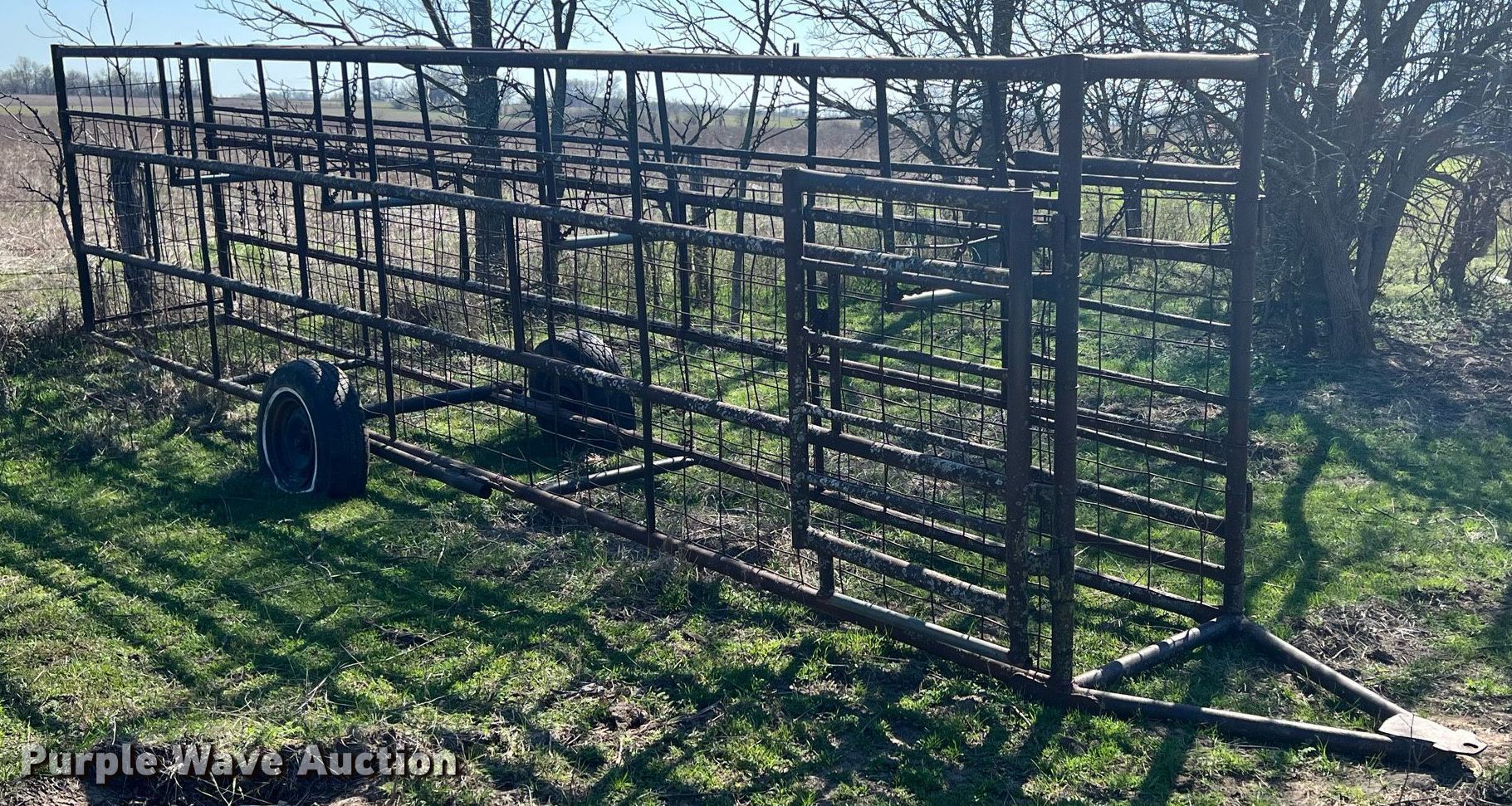 Powder River livestock squeeze chute. 10'L x 6'W, Self-catching head gate, 29'L x 3'W alley. 256 South 20th Street. Walnut, KS 66780