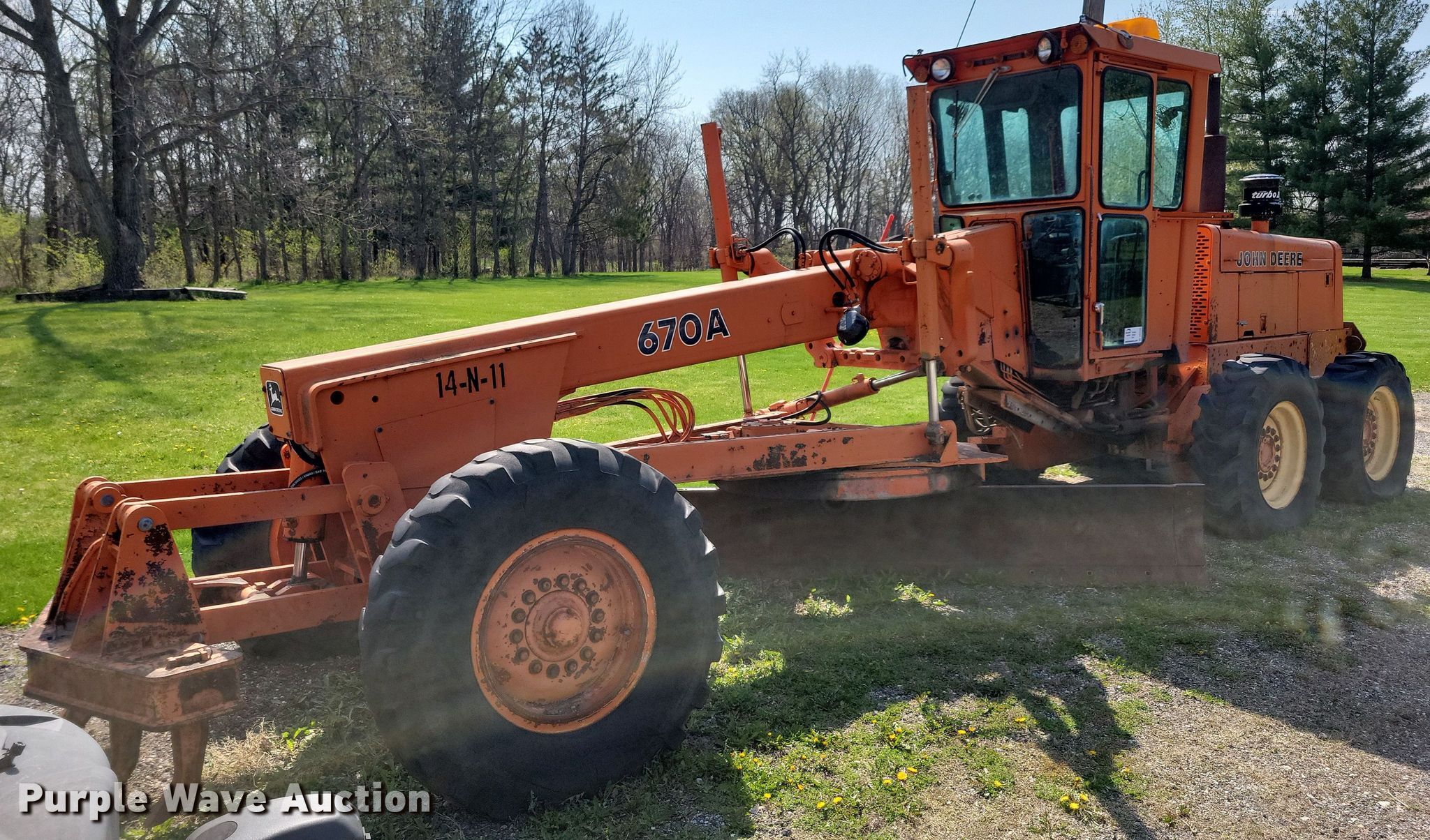 Purple Wave is selling a used Motor Grader in Iowa. This item is a 1983 John Deere 670A motor grader with the following: Hours: 4,275 on meter, Serial: DW670AX500196