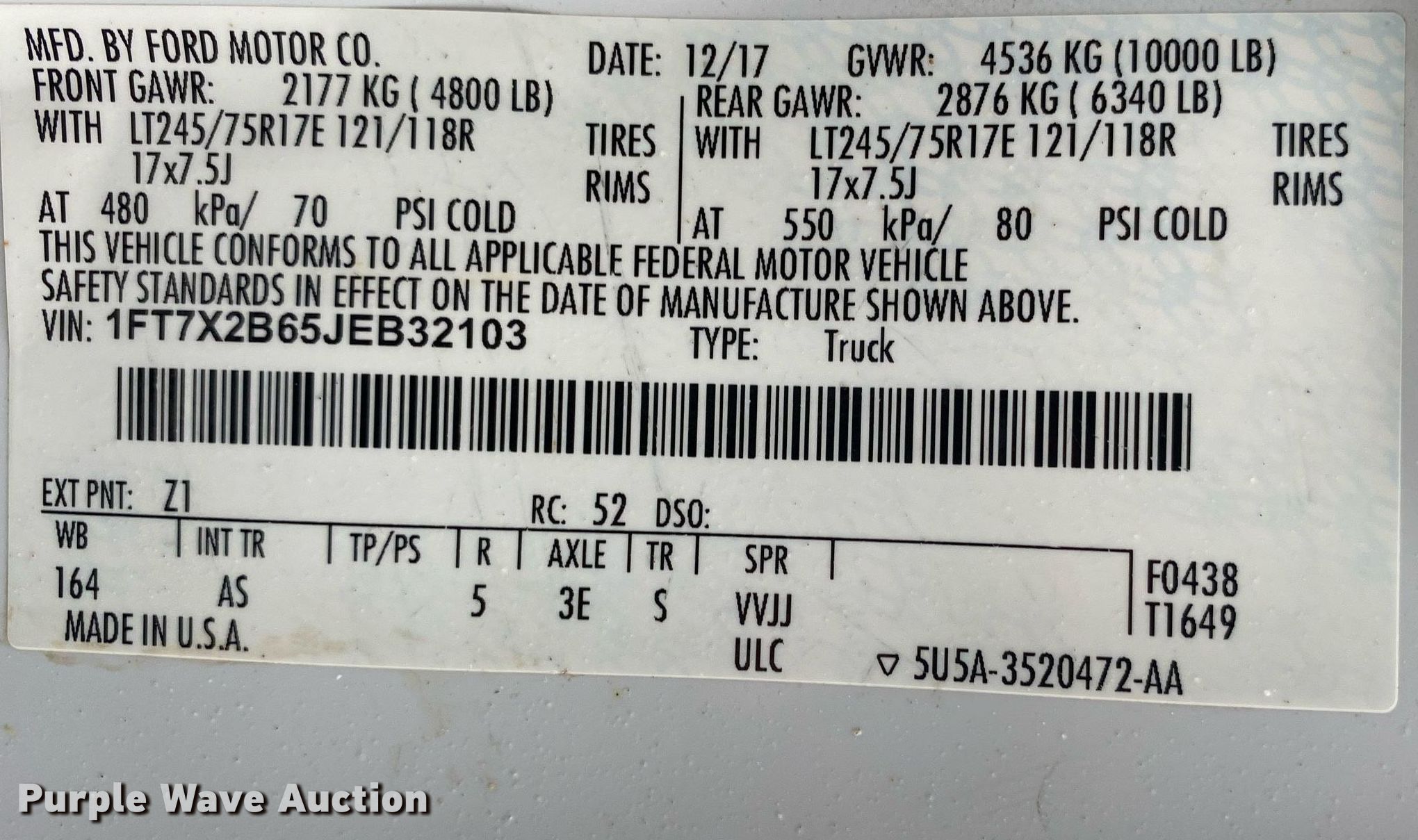 Purple Wave is selling a used 3/4 or 1 Ton Pickup or Van in Oklahoma. This item is a 2018 Ford F250 Super Duty SuperCab utility bed pickup truck with the following: Miles: 164,772 on odometer, VIN: 1FT7X2B65JEB32103