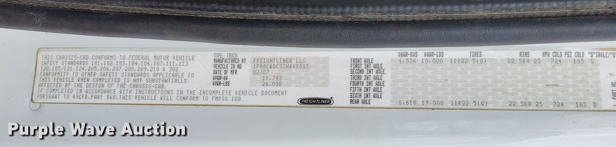 - VIN: 1FVACWDC37HW68085