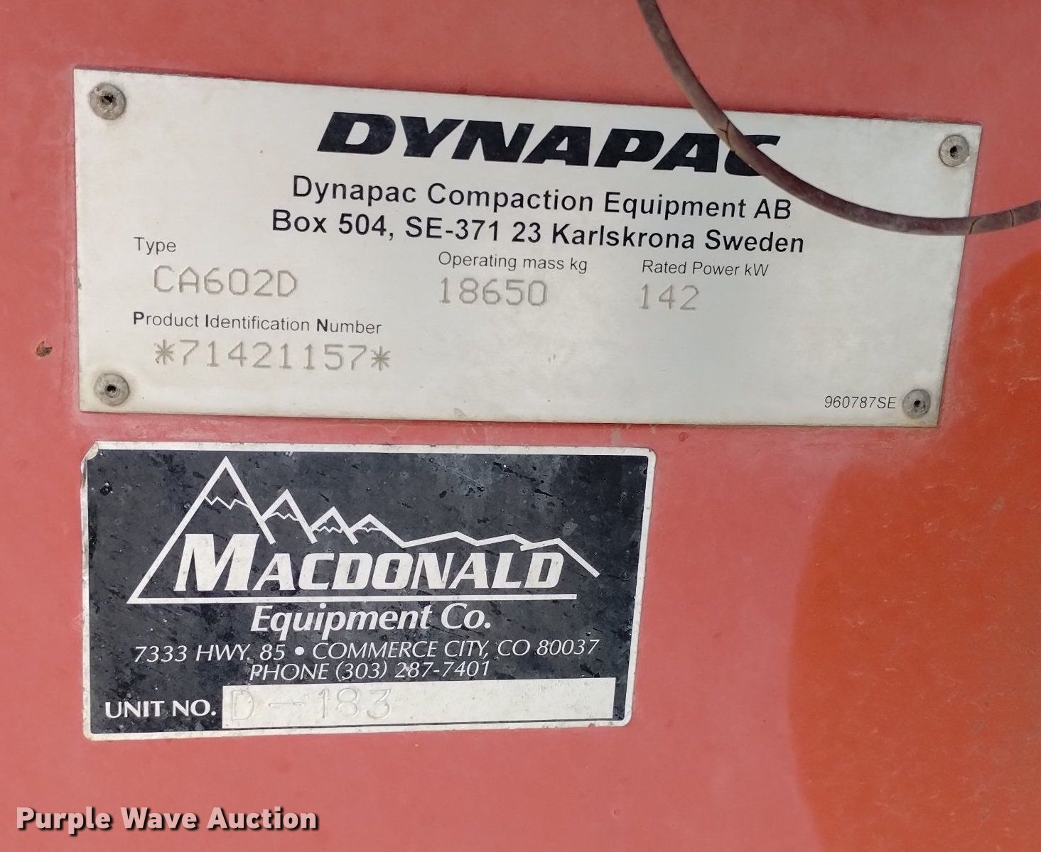 Purple Wave is selling a used Single Drum Roller Compactor in Colorado. This item is a Dynapac CA602D single drum vibratory roller with the following: Hours: 7,016 on meter, Serial: 71421157