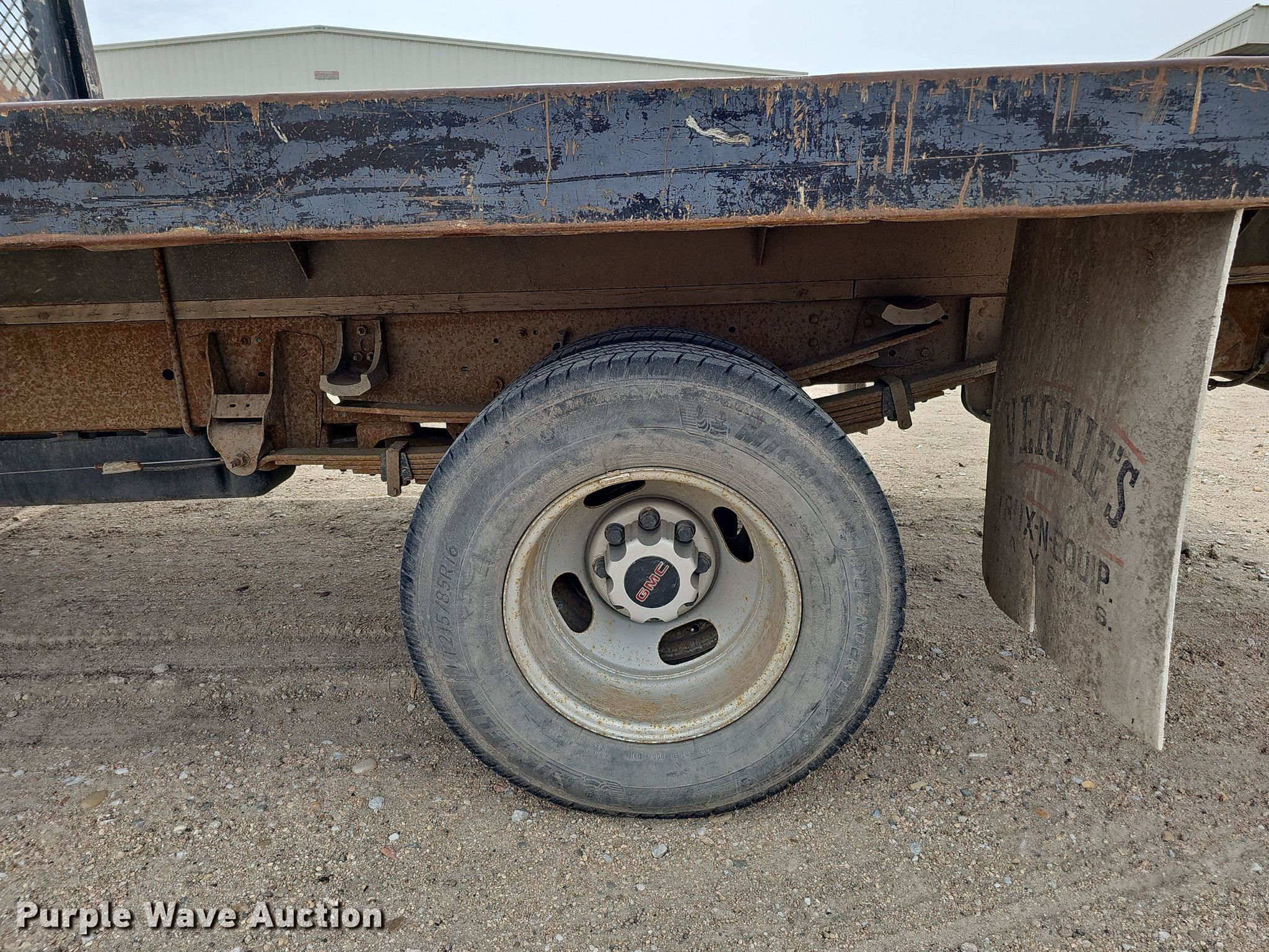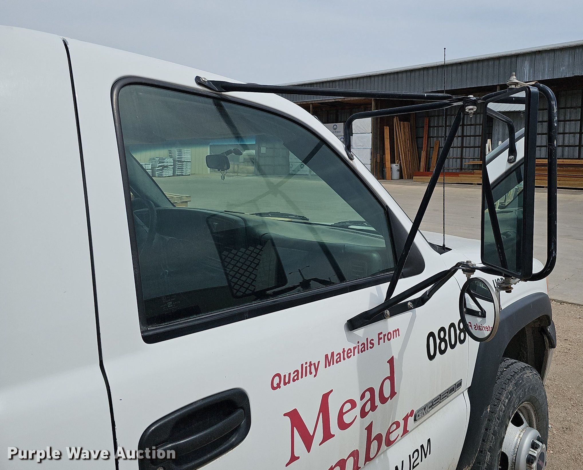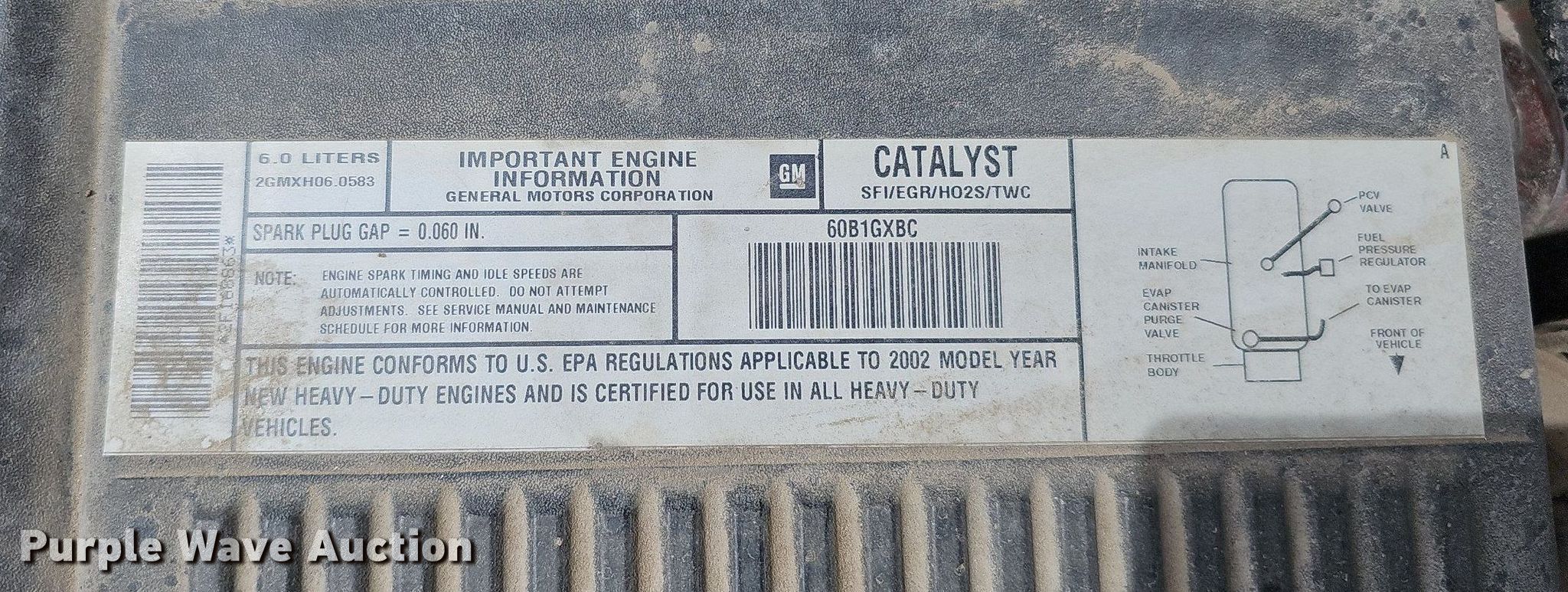 2002 GMC Sierra 3500 flatbed pickup truck. Miles: 192,790 on odometer, VIN: 1GDJC34U82F168863. Engine Displacement: 6.0L V8 OHV, Cylinders: 8, Fuel type: Gas. Transmission Manual, Speed: 5. Interior Heat. Features Flatbed Knapheide PVMXT-123C, 12' 6" L x 96" W. Tires Size: LT215/85R16. Notes Dash warning indicator: ABS, Windshield chipped or cracked. Nebraska title. Title distribution may be delayed up to 14 days from verification of funds. Mead Lumber of Lexington. 700 Plum Creek Parkway. Lexington, NE 68850