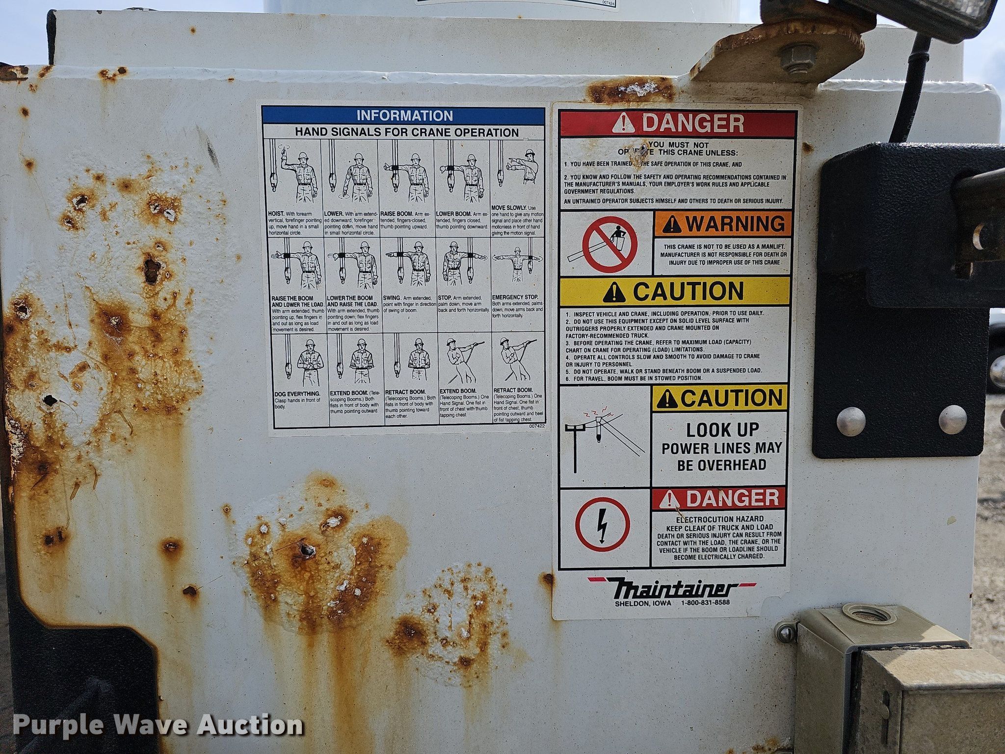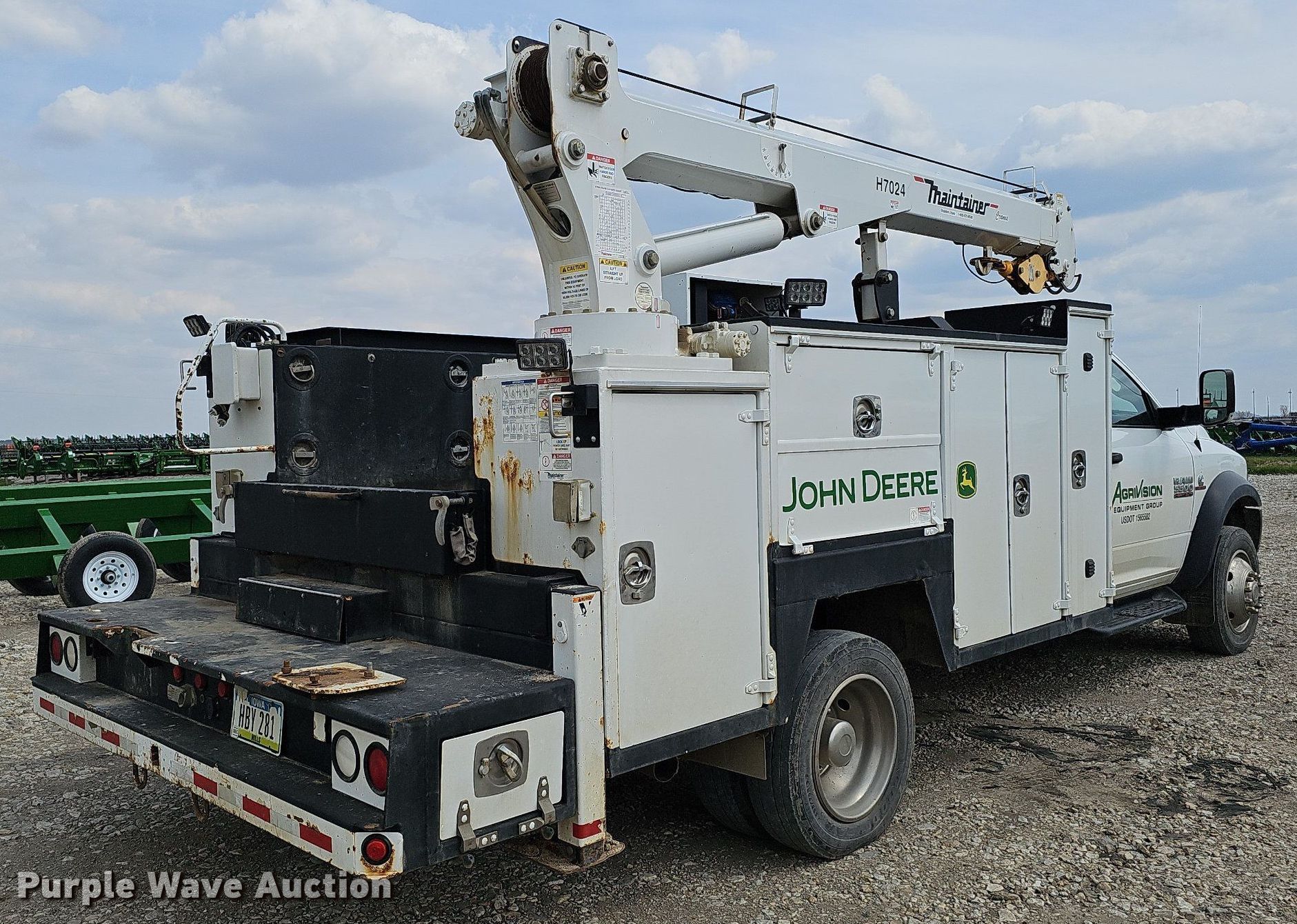 2018 Dodge Ram 5500HD utility / service truck. Miles: 171,764 on odometer, VIN: 3C7WRNBL4JG122347. Engine Cummins, Displacement: 6.7L, Cylinders: 6, Fuel type: Diesel. Transmission Automatic. Chassis Four wheel drive, Axles: Single, Suspension: Spring, Brakes: Hydraulic, GVWR: 19,500 lbs, Wheelbase: 171". Interior AC, Heat, Heated mirrors, Power windows, Power locks, Cruise control, Backup camera, Auxiliary controls. Features Bed Maintainer Corp EE025, 13'6" L x 95" W, 120V outlets: 3, Air compressor, Crane Maintainer H7024, Maximum boom length: 24', Maximum lift capacity: 4,300 lbs. Tires Size: 225/70R19.5. Notes Dash warning indicator: Check engine, Dead battery, Non-operational wireless crane remote control. Iowa title. Title distribution may be delayed up to 14 days from verification of funds. AgriVision Equipment Group. 58668 190th Street. Pacific Junction, IA 51561