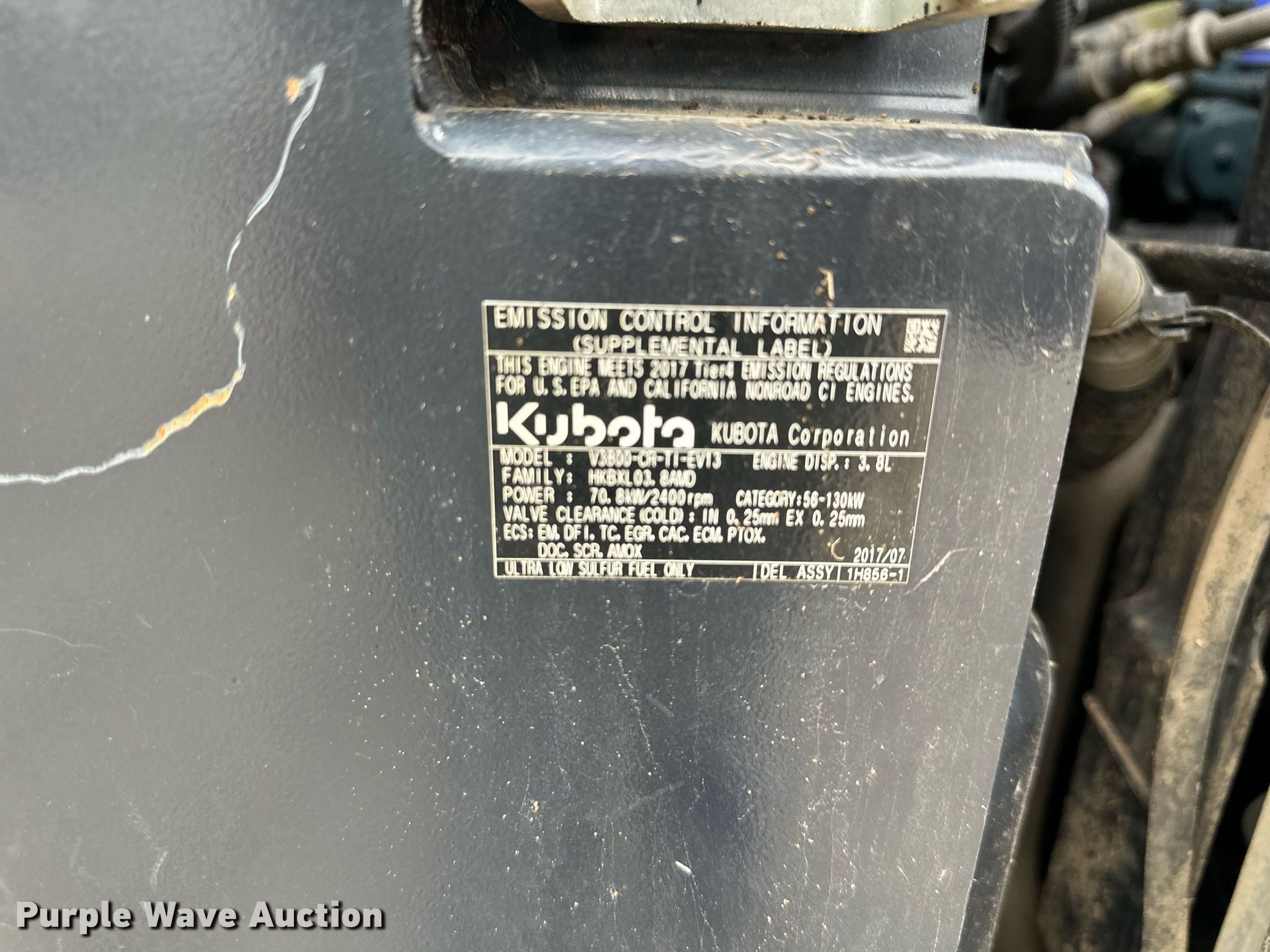 Kubota SVL95-2S skid steer loader. Hours: 1,829 on meter. Engine Kubota , Displacement: 3.8L, Cylinders: 4, Fuel type: Diesel. Transmission Hydrostatic. Operators station EROPS, AC, Heat, Bucket control: Hand. Features Auxiliary hydraulics, Quick coupler: Hydraulic, Bucket Kubota , Width: 80", Cutting edge: Weld-on, Teeth: Weld-on, Forks Caterpillar , Length: 72". Tracks Width: 18". Drisco Inc.. 1401 Kansas 4. Valley Falls, KS 66088