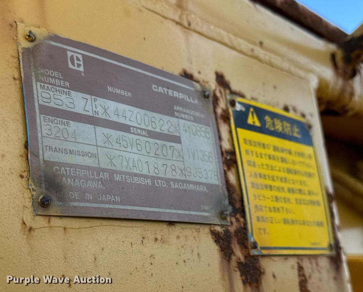 Purple Wave is selling a used Crawler Loader in Missouri. This item is a 1987 Caterpillar 953 track loader with the following: Hours: 1,182 on meter, Actual hours unknown, Serial: 44Z00622