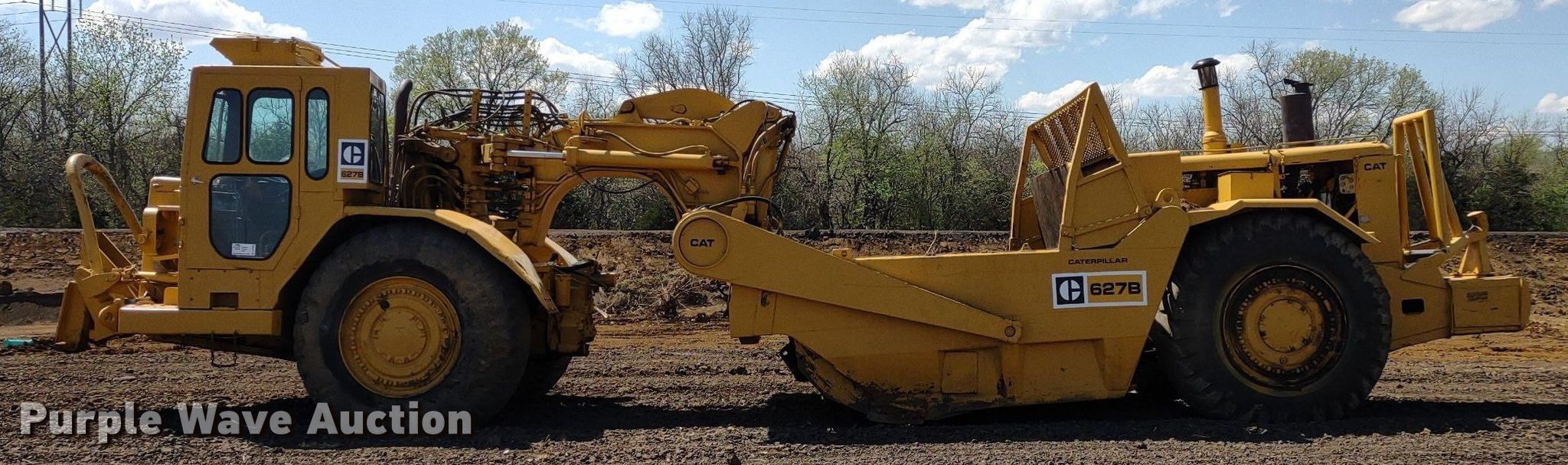 Purple Wave is selling a used Conventional Scraper in Kansas. This item is a 1974 Caterpillar 627B scraper with the following: Hours: 1,850 on meter, Serial: 15S480