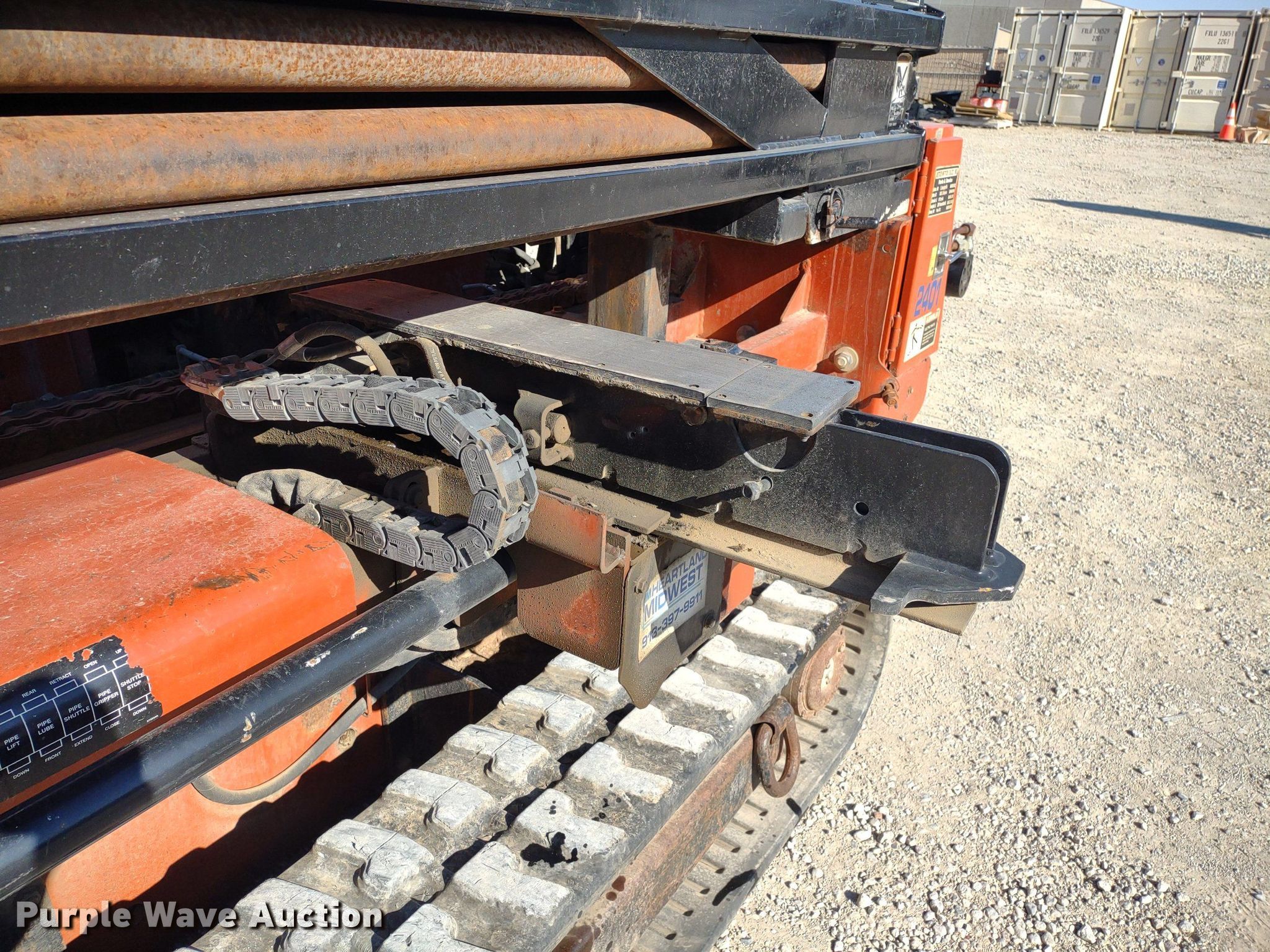 2001 Ditch Witch JT2720 AT directional boring unit. Hours: 1,818 on meter, Serial: 2V2039. Engine Cummins, Cylinders: 4, Fuel type: Diesel. Features Ground drive remote: Tethered, Drill stems On drill: 30, Drill stem length: 10' Diameter: 2.5", Auto rod loader, Rear hydraulic stabilizers, Hydraulic stake down. Tracks Width: 12.5", Rubber. Notes Possible engine issues, fuel in oil Injection pump issues. Heartland Midwest LLC. 15795 South Mahaffie Street. Olathe, KS 66062