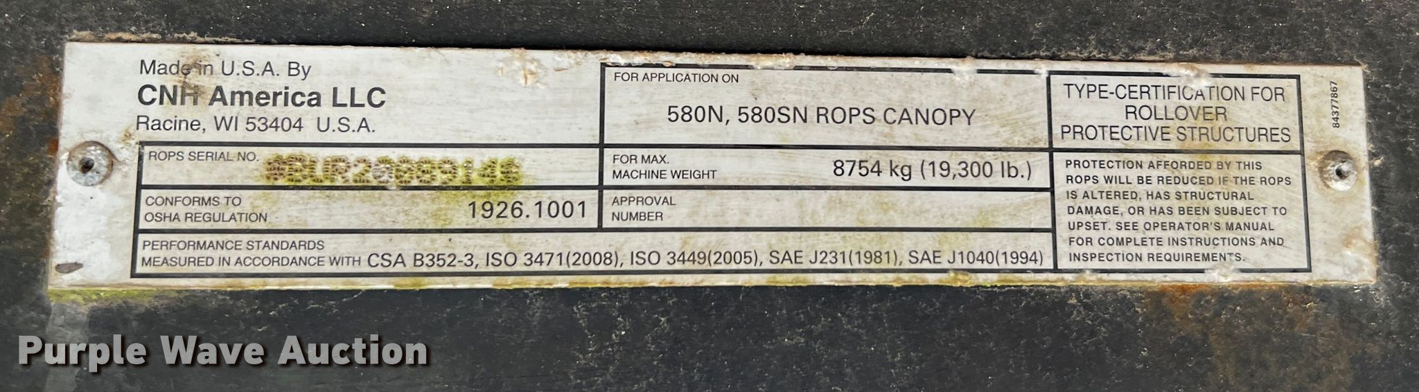 2012 Case 580 Super N backhoe. Hours: 3,620 on meter, Serial: JJGN58SNECC564494. Engine Cylinders: 4, Fuel type: Diesel. Transmission Shuttle shift, 4F - 4R. Chassis Four wheel drive. Operators station OROPS, Backhoe controls: Pilot control, Pattern changer. Features Loader Bucket Width: 83", Cutting edge: Bolt-on, Backhoe Extendable stick, Quick coupler: Manual, Bucket Width: 24", Cutting edge: Weld-on, Teeth: 5.. Tires Front: 12-16.5, Rear: 19.5L-24. Falcon Lease Operating Company. 31 Schell Road. Victoria, TX 77904