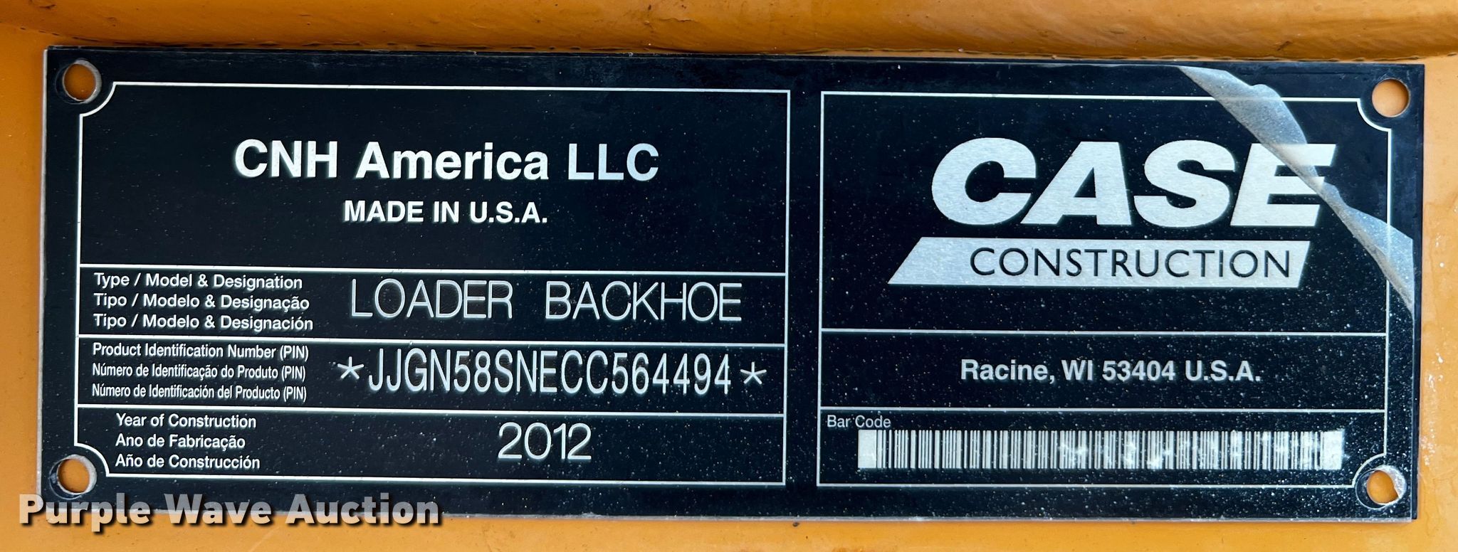Purple Wave is selling a used Tractor Loader Backhoe in Texas. This item is a 2012 Case 580 Super N backhoe with the following: Hours: 3,620 on meter, Serial: JJGN58SNECC564494