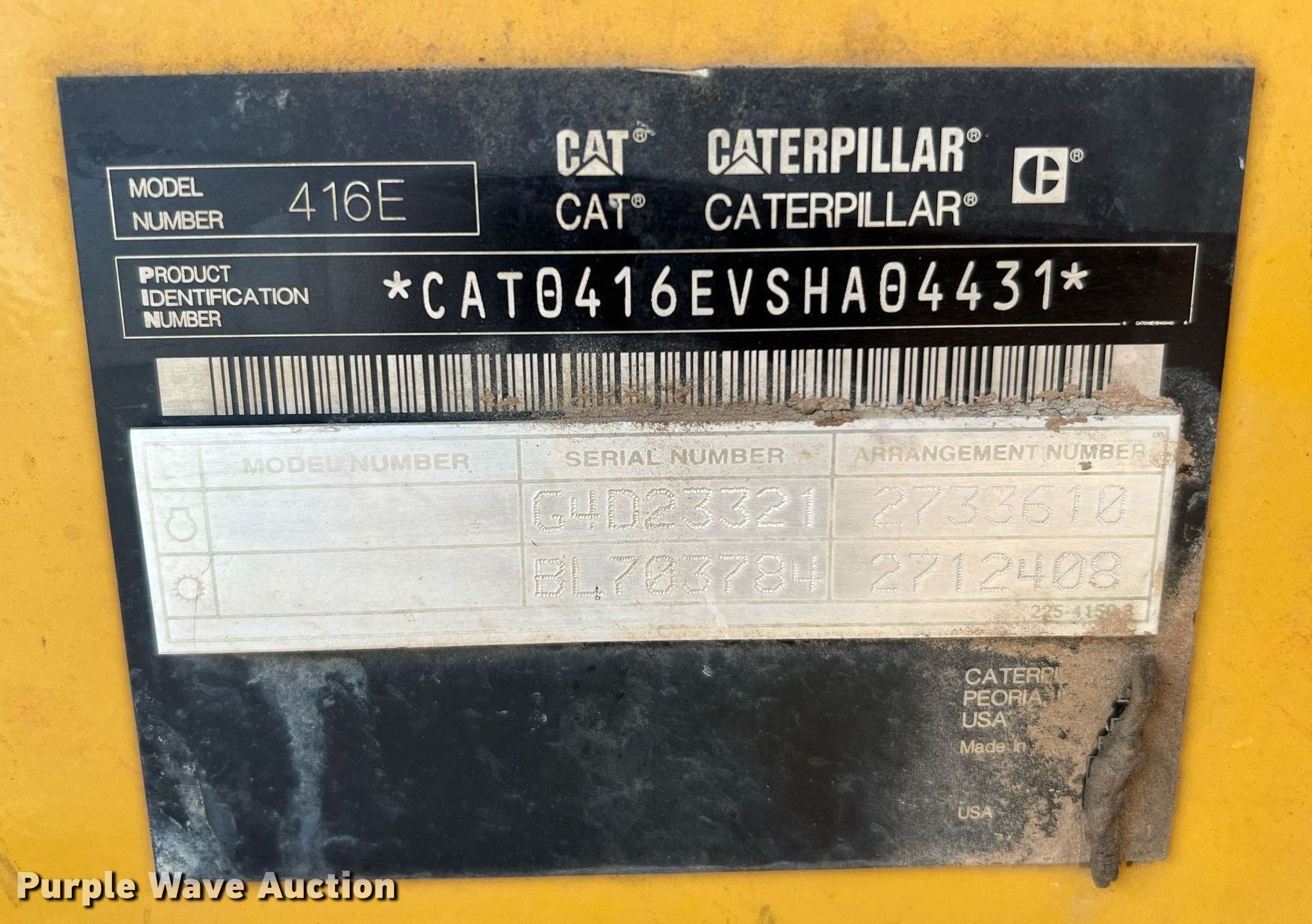Purple Wave is selling a used Tractor Loader Backhoe in Texas. This item is a 2008 Caterpillar 416E backhoe with the following: Hours: 4,193 on meter, Miles or hours may vary, unit still in use, Serial: CAT0416EVSHA04431