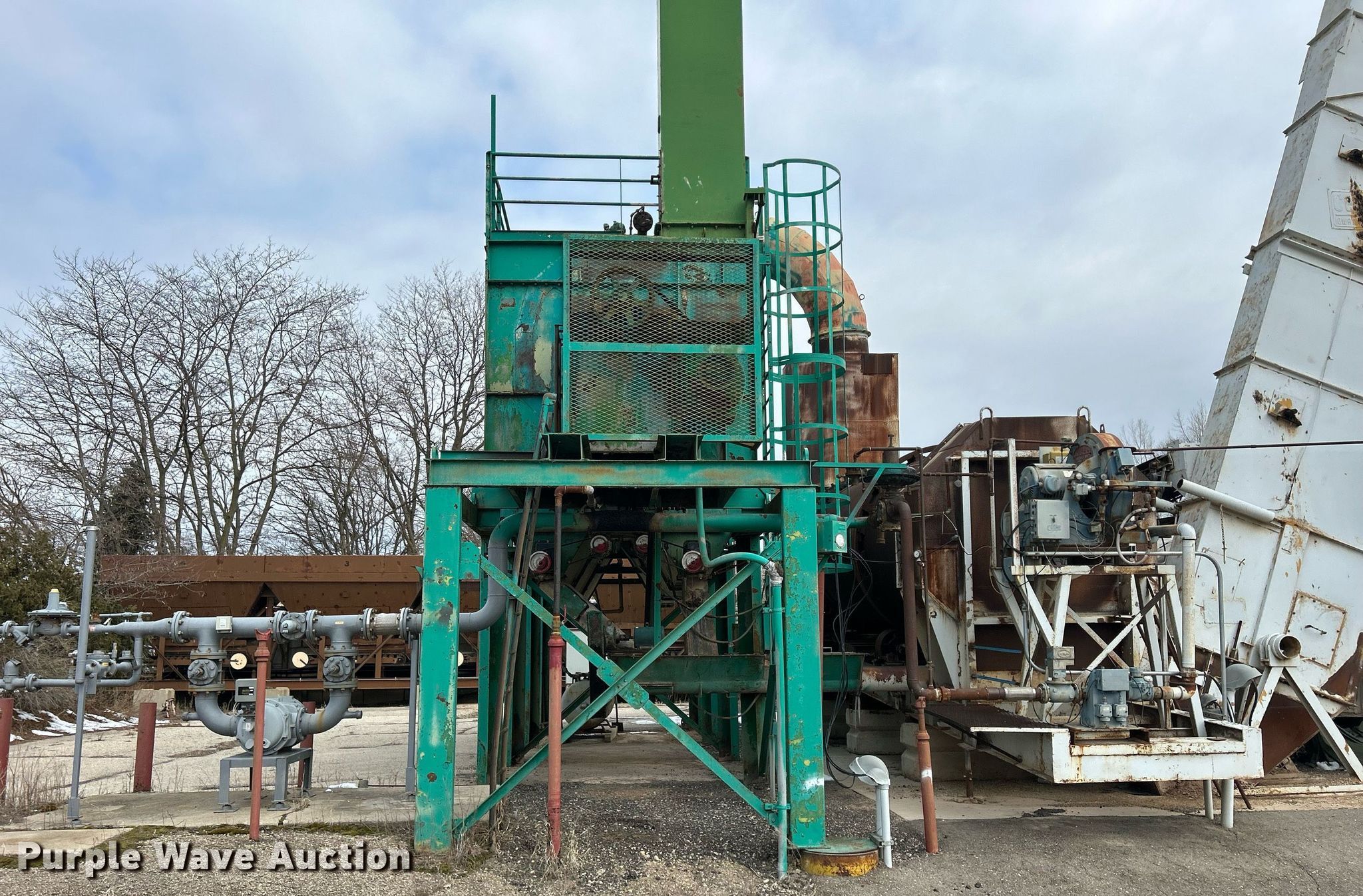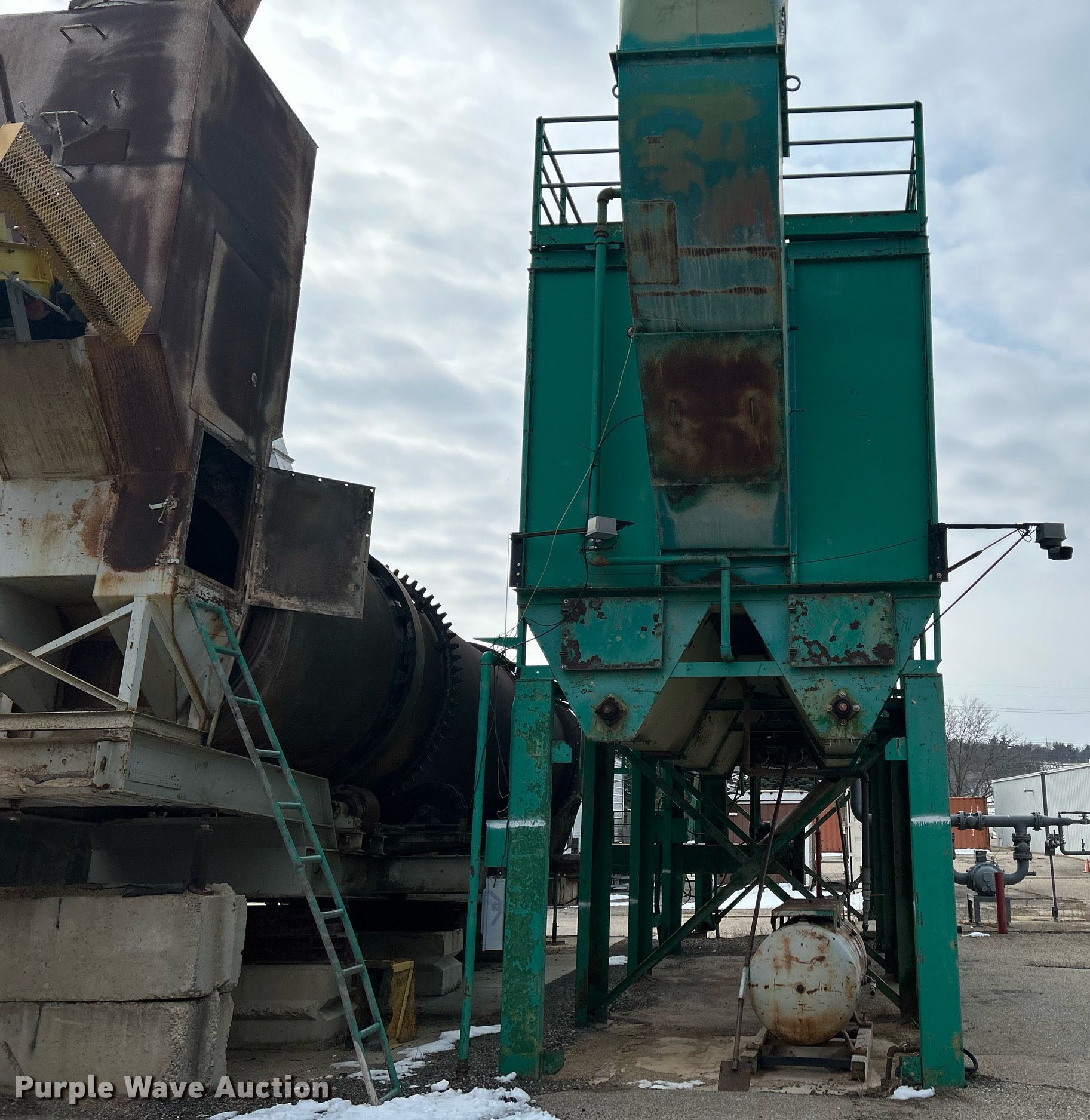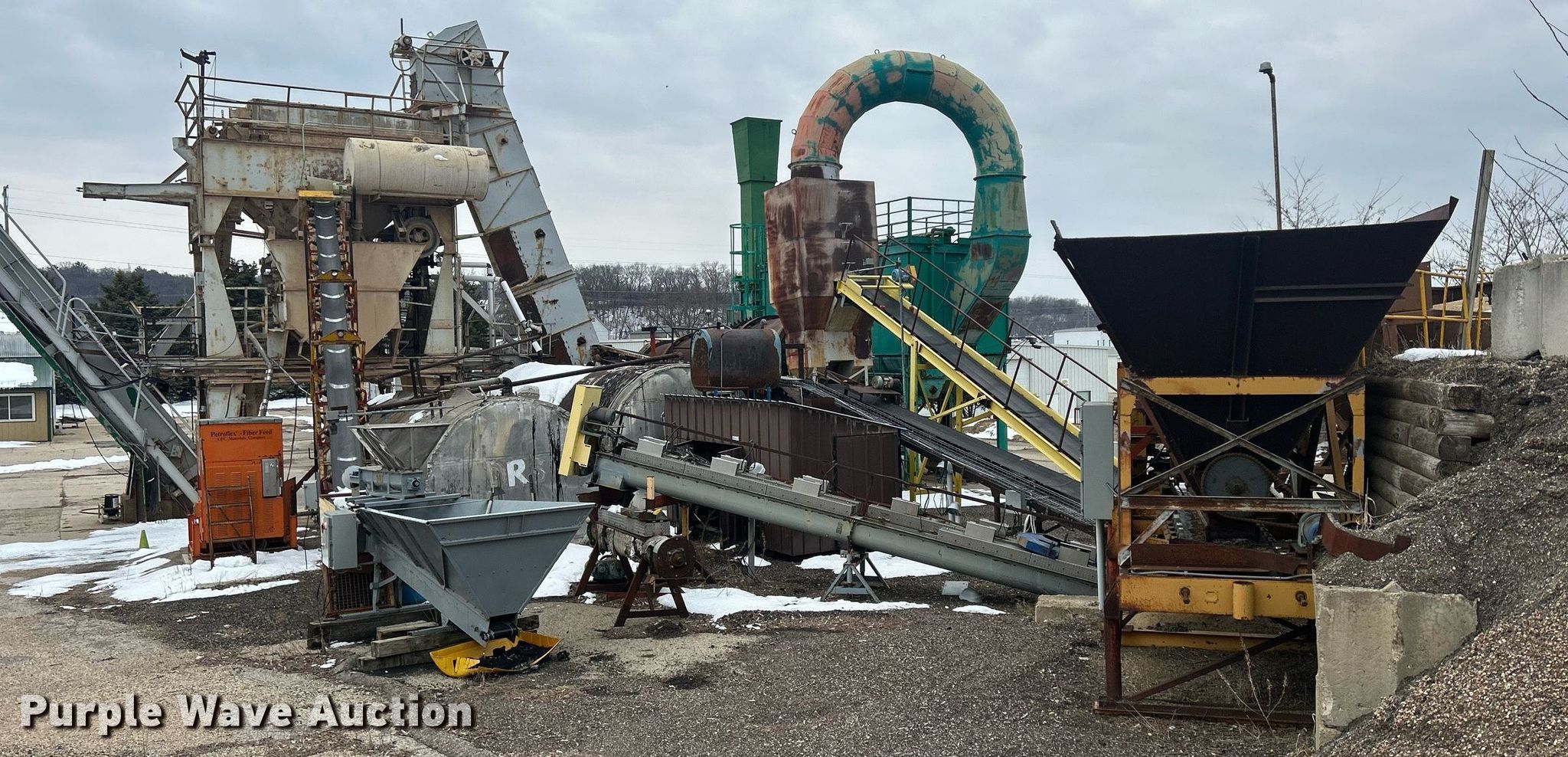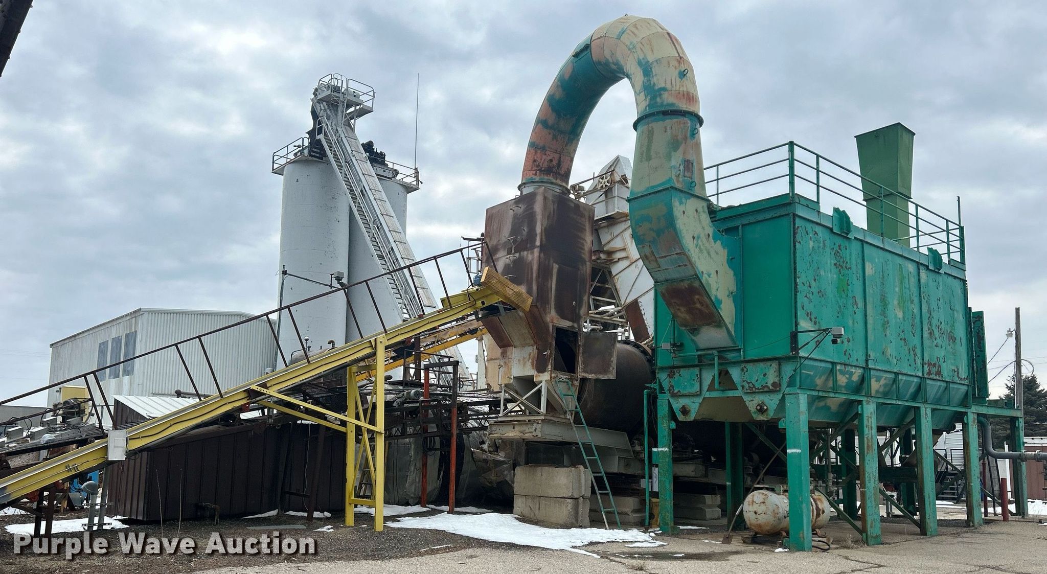 Purple Wave is selling a used Screen or Screening Plant in Wisconsin. This item is a Sand drying plant with the following: Burner, Genco AF-40, CFM: 4,000, Maximum RPM: 3,600, Natural gas fired, Serial: AF-1024, Kolberg 1963-4 recycle cold feed system, Cold feed bins: 6, 6' x 8', 8' x 11', Poly liner, Agitator, (4) 9' x 14',, Control house, Controls, Gencor Systems, Gencontrol III, Serial: 2004-0157, Libra mixing system,, Cedarapids drum, 30'L x 8' diameter, Counter flow dryer, Serial: 18753, Barber Green baghouse, 25'L x 9.5'W x 9'H, Size: S01 33, Part no: 14-G-13 1, Serial: 69947, (4) conveyors, Length: 33', Length: 37', Length: 42', Length: 55', 10.5'L x 6'W shingle bin, 12"W belt, VD control, Additive applicator
