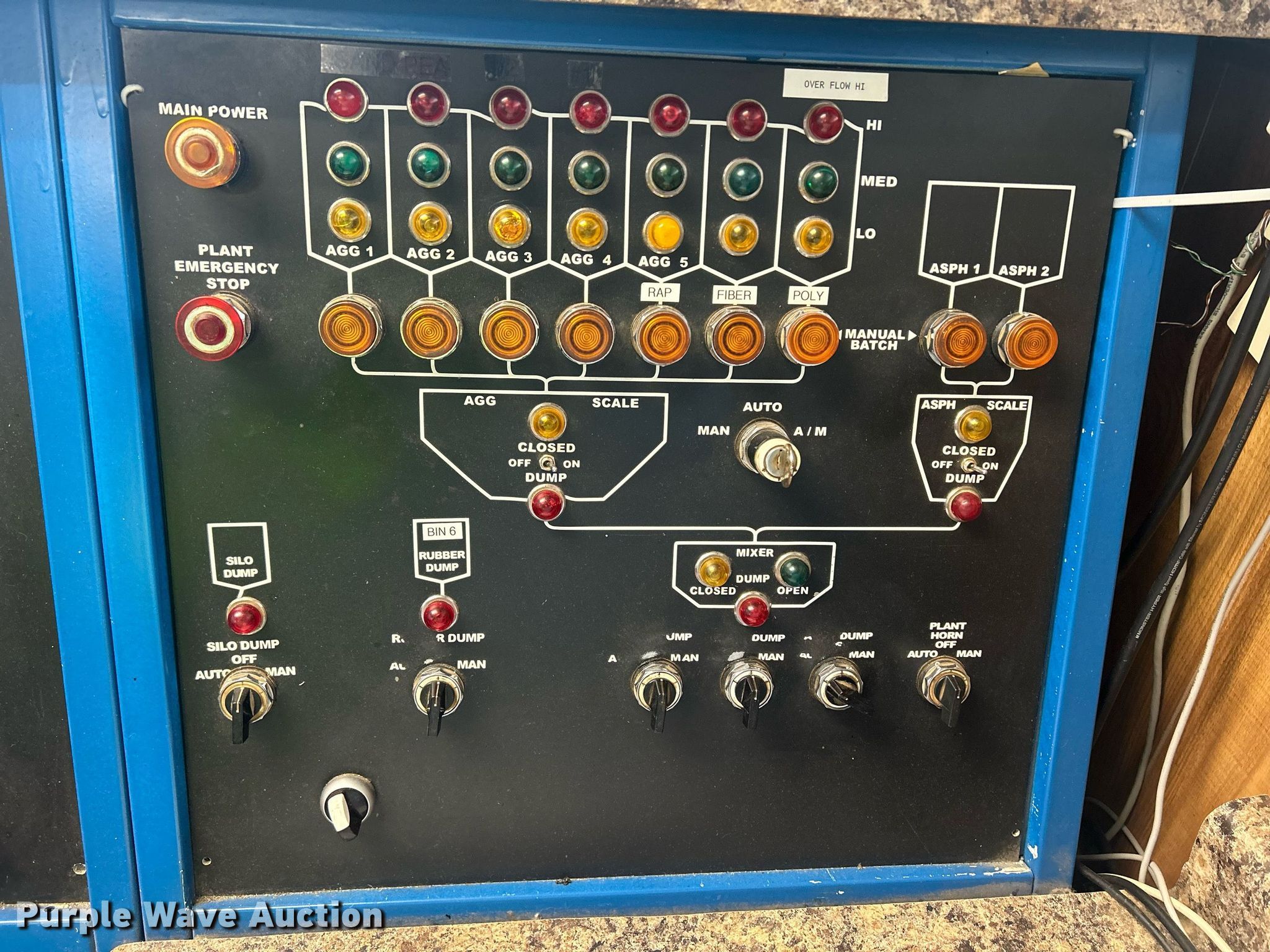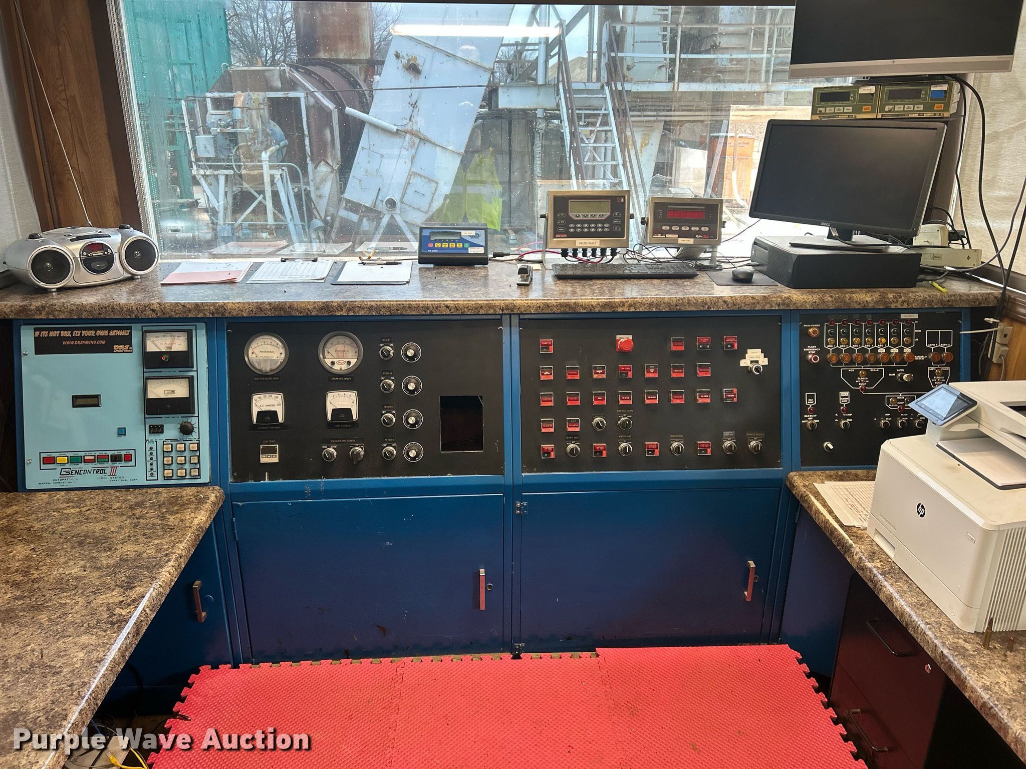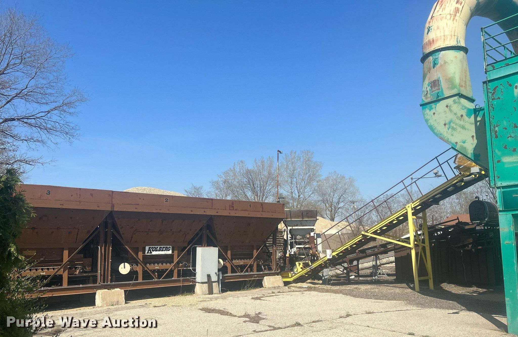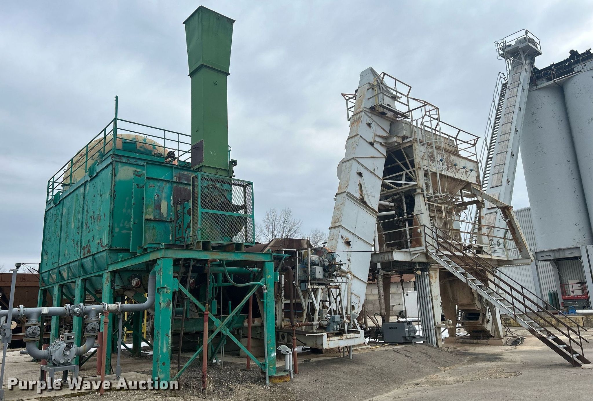 Purple Wave is selling a used Screen or Screening Plant in Wisconsin. This item is a Sand drying plant with the following: Burner, Genco AF-40, CFM: 4,000, Maximum RPM: 3,600, Natural gas fired, Serial: AF-1024, Kolberg 1963-4 recycle cold feed system, Cold feed bins: 6, 6' x 8', 8' x 11', Poly liner, Agitator, (4) 9' x 14',, Control house, Controls, Gencor Systems, Gencontrol III, Serial: 2004-0157, Libra mixing system,, Cedarapids drum, 30'L x 8' diameter, Counter flow dryer, Serial: 18753, Barber Green baghouse, 25'L x 9.5'W x 9'H, Size: S01 33, Part no: 14-G-13 1, Serial: 69947, (4) conveyors, Length: 33', Length: 37', Length: 42', Length: 55', 10.5'L x 6'W shingle bin, 12"W belt, VD control, Additive applicator