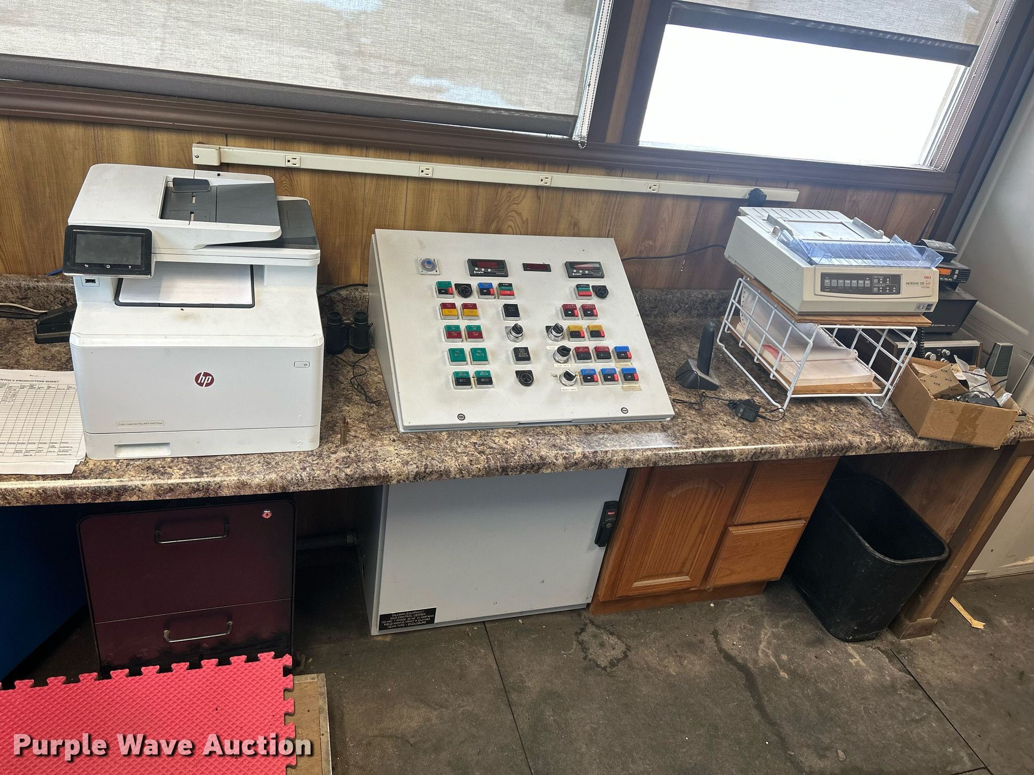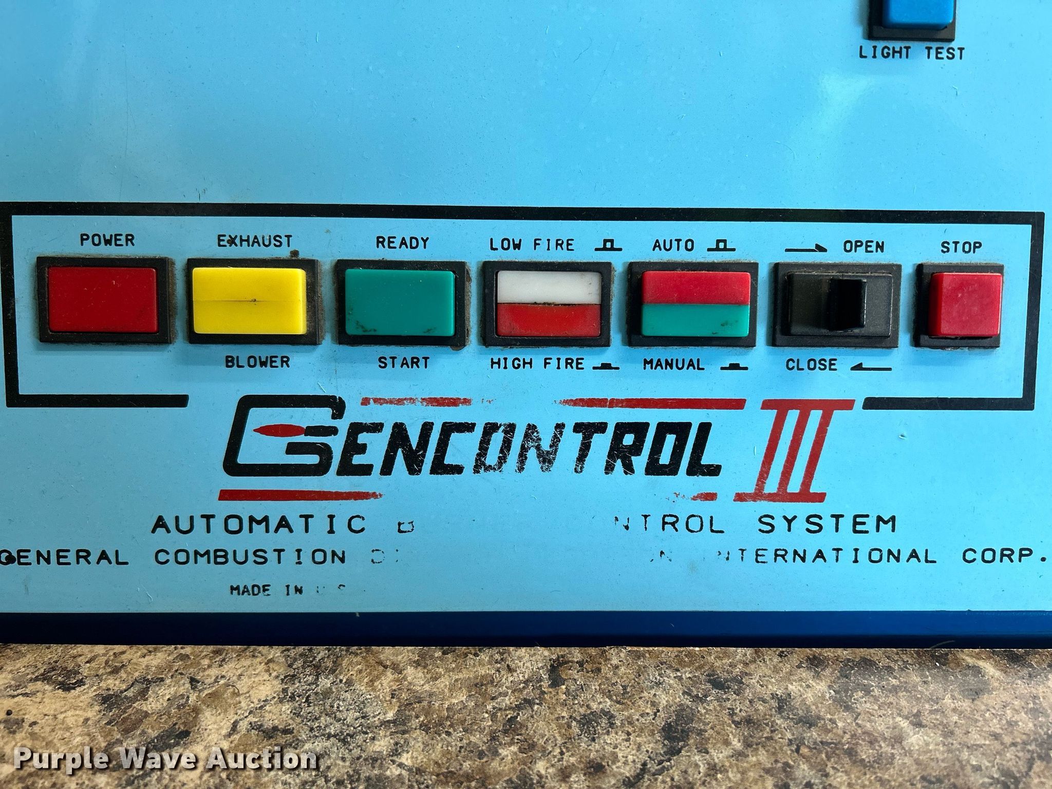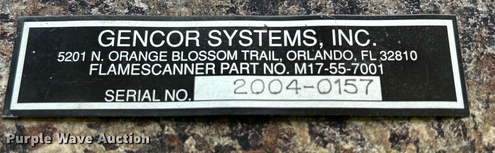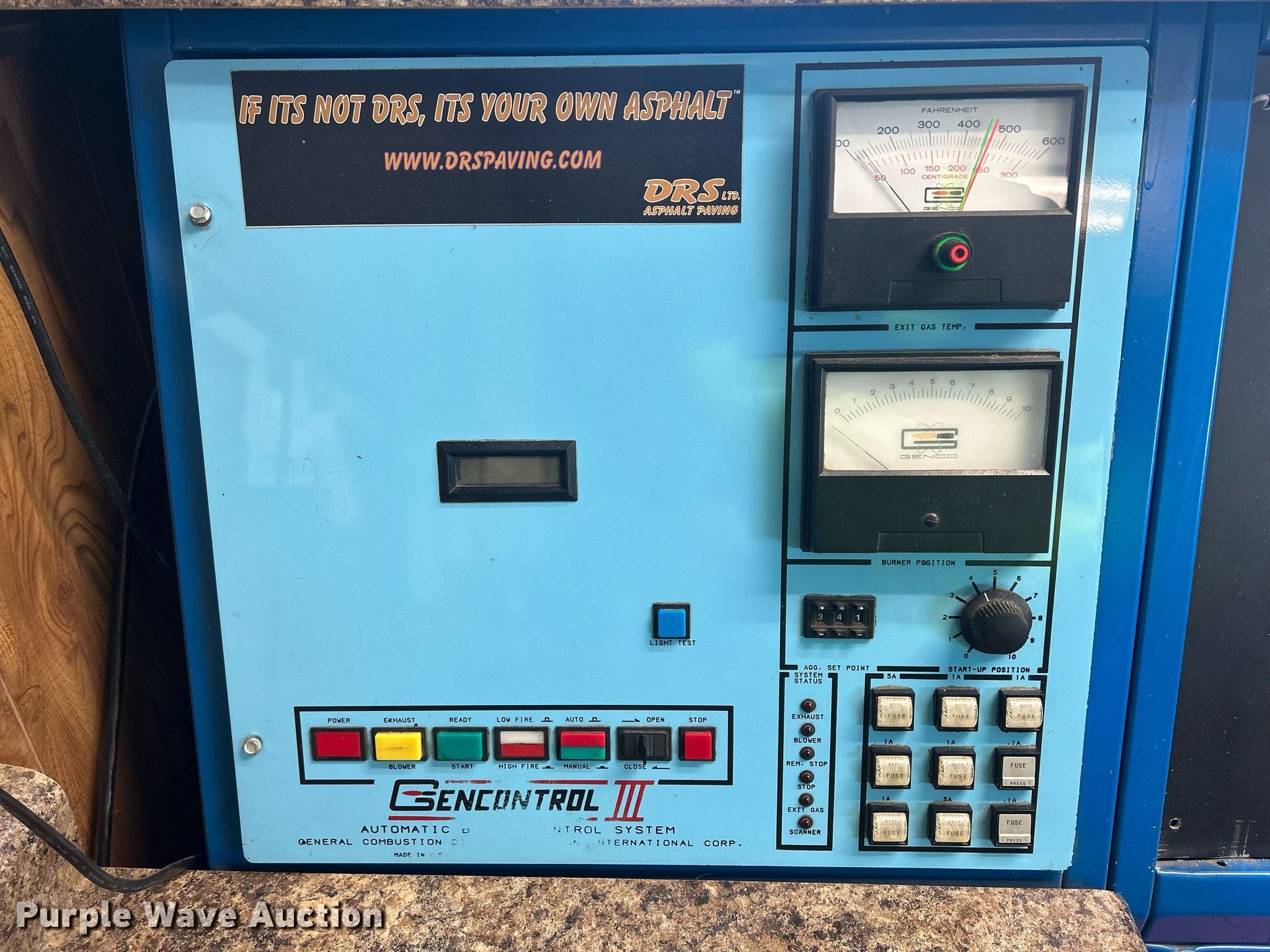 Sand drying plant. Features. Burner Genco AF-40, CFM: 4,000, Maximum RPM: 3,600, Natural gas fired, Serial: AF-1024, Kolberg 1963-4 recycle cold feed system Cold feed bins: 6 6' x 8', 8' x 11' Poly liner, Agitator, (4) 9' x 14', Control house Controls Gencor Systems, Gencontrol III Serial: 2004-0157, Libra mixing system, Cedarapids drum 30'L x 8' diameter, Counter flow dryer, Serial: 18753, Barber Green baghouse 25'L x 9.5'W x 9'H, Size: S01 33, Part no: 14-G-13 1, Serial: 69947, (4) conveyors Length: 33', Length: 37', Length: 42', Length: 55', 10.5'L x 6'W shingle bin 12"W belt, VD control, Additive applicator. Notes Generator power command not included , Refrigerator not included , Cabinets not included , (2) asphalt storage tanks not included, Cedar Rapids BM50 twin shaft pugmill tower not included, Bucket conveyor not included, Drag slat conveyor and silos not included, Unknown operating condition. All aspects of disassembly and removal are the sole responsibility of the purchaser. Purchaser must provide proof of a one million dollar liability insurance policy prior to removal. Motion Engineering. 7154 U.S. 14. Middleton, WI 53562