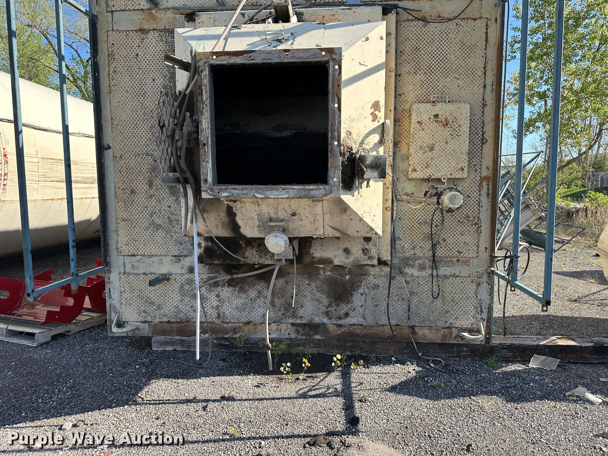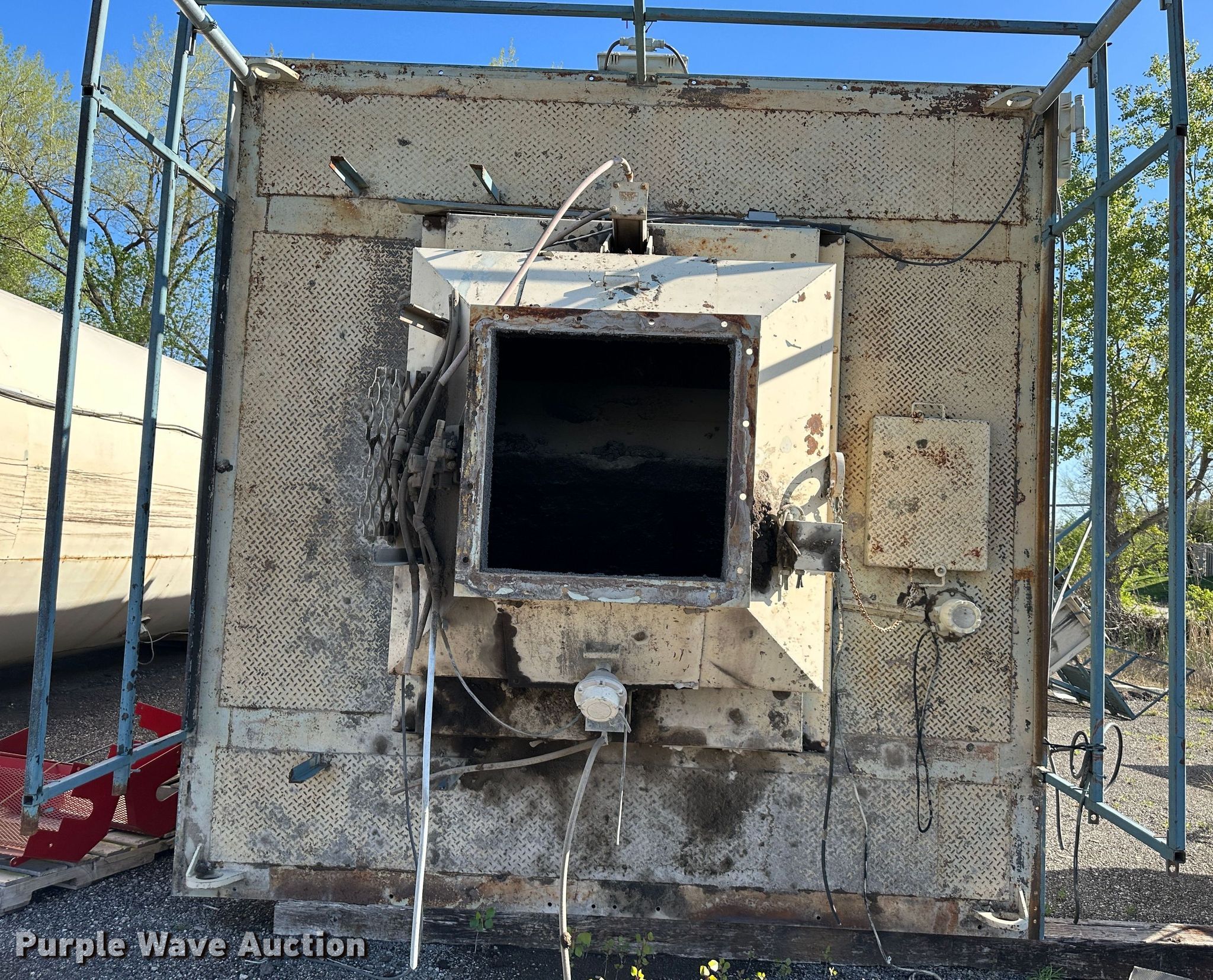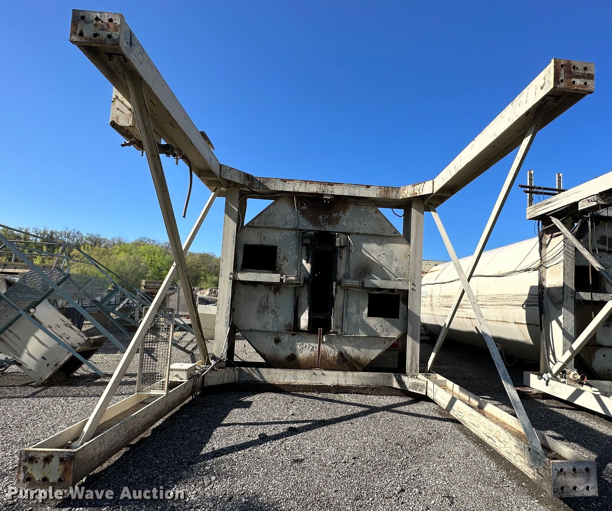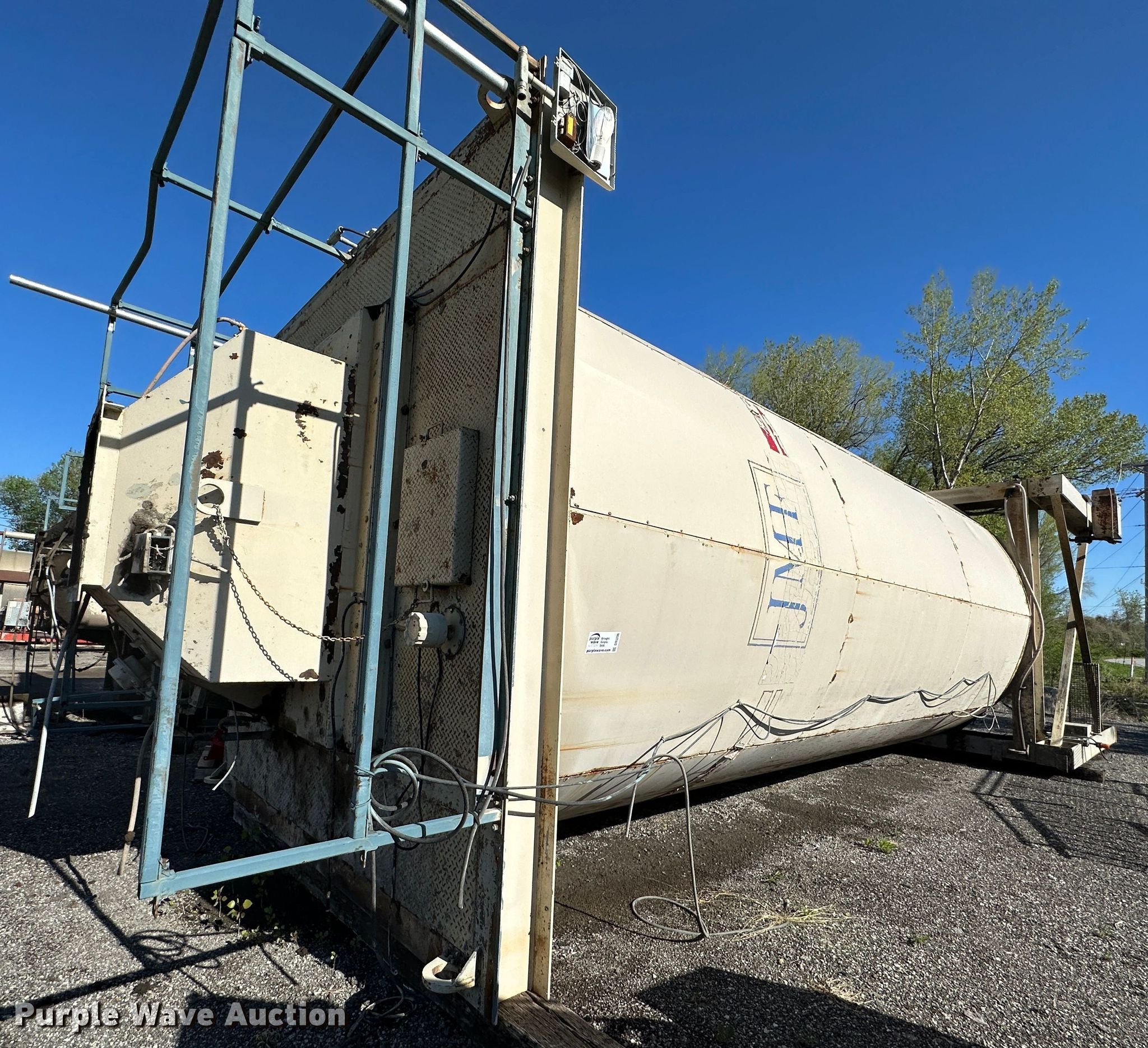 Asphalt silo. Overall: 45'L x 13'W x 12'H, Tank: 30'L x 12'H x 12' diameter Capacity: 140 tons, Batcher Capacity: 2 tons, Heated cone. All aspects of load-out and removal are the sole responsibility of the purchaser. J.M. Fahey Construction Company. 7014 Holliday Drive. Kansas City, KS 66106