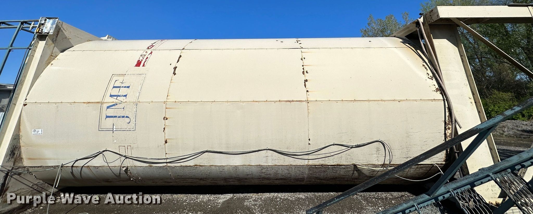 Purple Wave is selling a used Asphalt Plant in Kansas. This item is a Asphalt silo with the following: Overall: 45'L x 13'W x 12'H, Tank: 30'L x 12'H x 12' diameter, Capacity: 140 tons, Batcher, Capacity: 2 tons, Heated cone