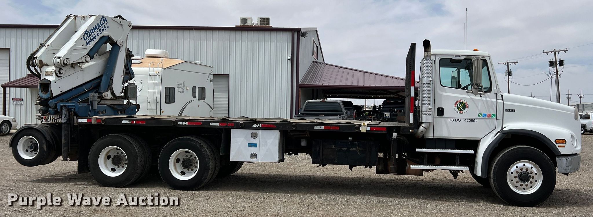 2004 Freightliner FL112 crane truck. Miles: 516,500 on odometer, VIN: 1FVHBGAS94HM47301. Engine Caterpillar C-12, Displacement: 12.0L, Cylinders: 6, Fuel type: Diesel, Engine brake. Transmission Manual, Speed: 10. Chassis Axles: Triple, Tag axle, Suspension: Spring, Brakes: Air, PTO, GVWR: 62,000 lbs Lift axle GAWR: 16,000 lbs. Interior AC, Heat, Power windows, Cruise control. Features Flatbed 21' L x 102" W, Crane 2003 Gormagh 40400E8 Hours: 364 on meter, Serial: 491808, Boom Knuckle, Maximum boom length: 40' Sections: 7, Boom controls Ground, Remote control.. Tires Front: 385/65R22.5, Rear: 11R22.5, Lift axle: 215/75R17.5. Texas title. Seller is a Texas licensed motor vehicle dealer. The buyer may be required to pay sales tax and/or registration fees to the dealer prior to taking possession. Title will be assigned and distributed by the dealer. Please contact the seller for distribution questions. Specialty Trucks of Lubbock. 839 US-62. Wolfforth, TX 79382