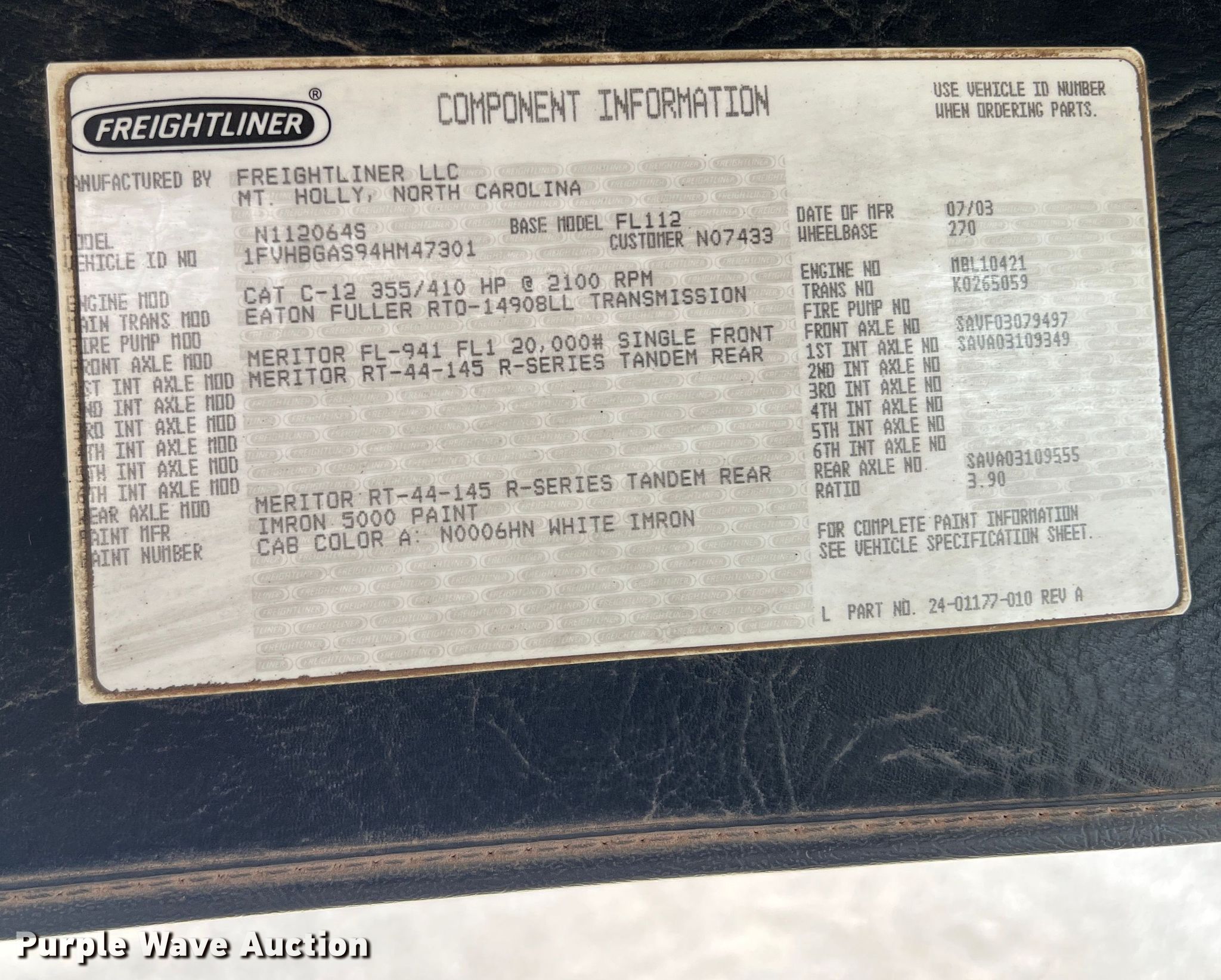 Purple Wave is selling a used Crane Truck in Texas. This item is a 2004 Freightliner FL112 crane truck with the following: Miles: 516,500 on odometer, VIN: 1FVHBGAS94HM47301