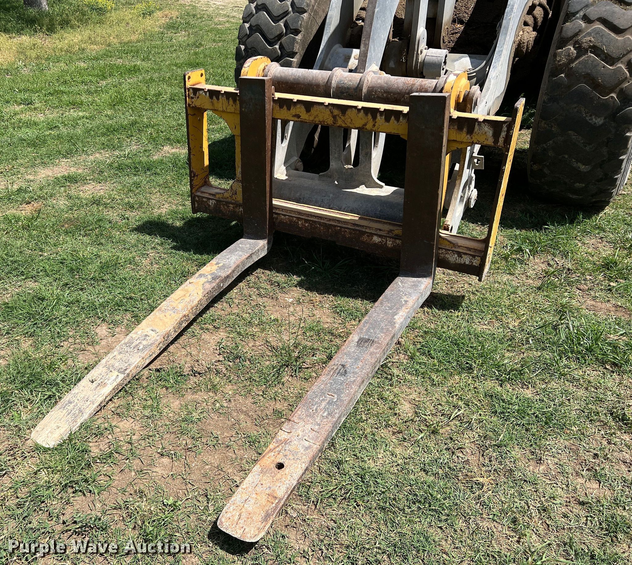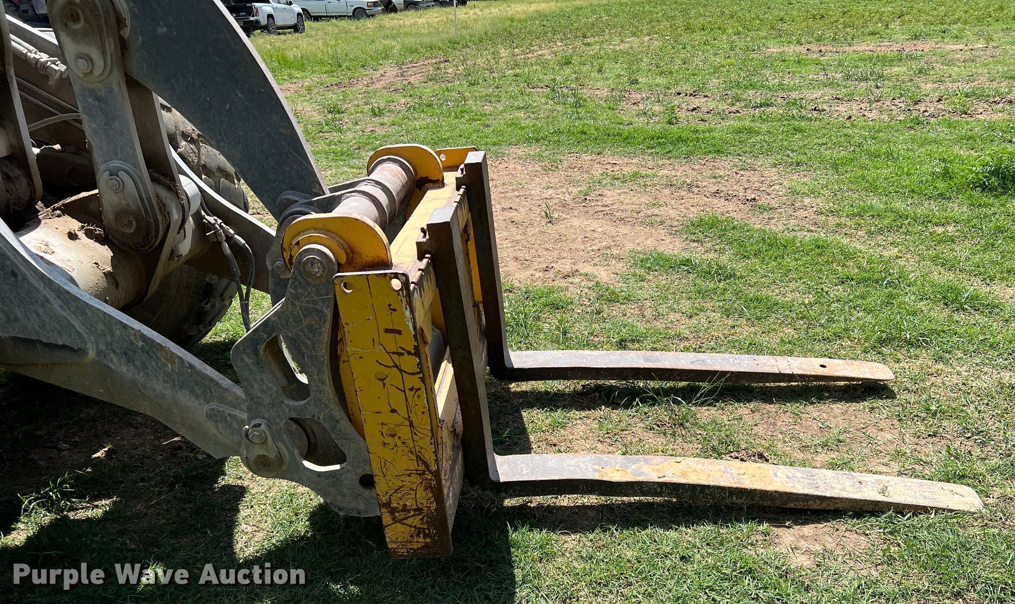 2008 John Deere 544J wheel loader. Hours: 22,973 on meter, Serial: 616270. Engine Cylinders: 6, Fuel type: Diesel. Transmission Powershift, 4F - 3R. Chassis Differential lock. Operators station Enclosed cab, AC, Heat, Bucket controls: Joystick, Ride control. Features Quick coupler: Hydraulic, Counter weights, Bucket John Deere , Capacity: 3 cu.yd., Width: 98", Cutting edge: Bolt-on, Forks Length: 59". Tires Size: 20.5R25. Notes Glass cracked, Door glass replaced with plexiglass. Talsma Dairy Farm. 7469 County Rd 209. Hico, TX 76457