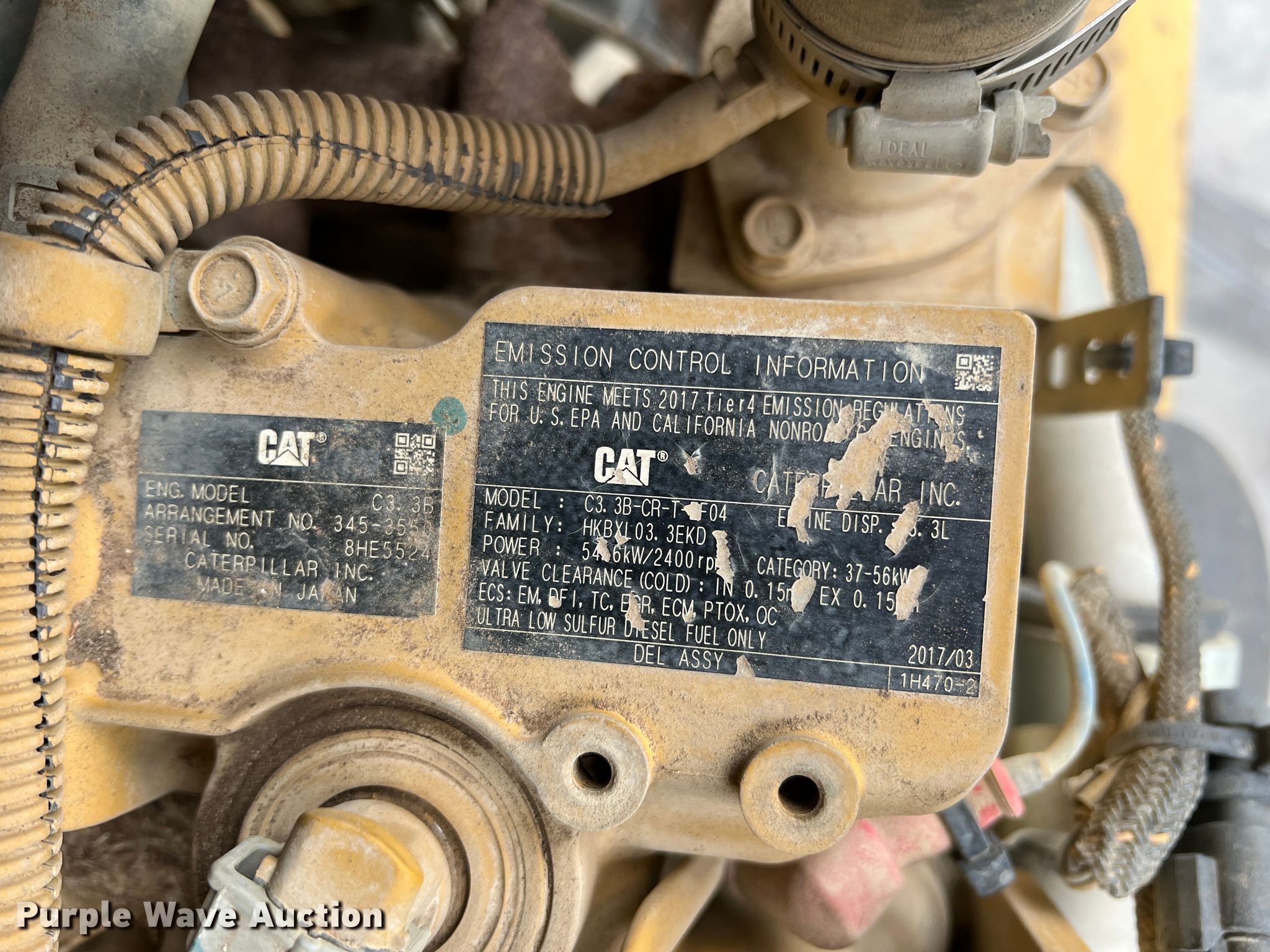 2017 Caterpillar 262D skid steer loader. Hours: 7,976 on meter, Serial: CAT0262DPDTB07035. Engine Caterpillar C3.3B, Serial: 8HE5524, Displacement: 3.3L, Cylinders: 4, Fuel type: Diesel. Transmission Hydrostatic, Two speed travel. Operators station OROPS, Bucket control: Hand. Features Auxiliary hydraulics, Quick coupler: Manual, Bucket Width: 73", Low profile, Cutting edge: Bolt-on. Tires Size: 12-16.5. Talsma Dairy Farm. 7469 County Rd 209. Hico, TX 76457