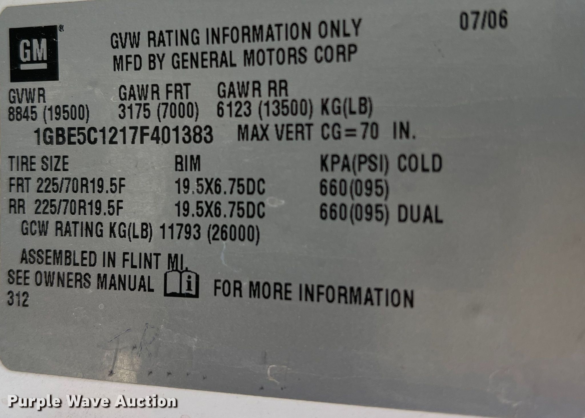 Purple Wave is selling a used Flat Bed Truck in Texas. This item is a 2007 Chevrolet C5500 flatbed truck with the following: Miles: 363,309 on odometer, VIN: 1GBE5C1217F401383