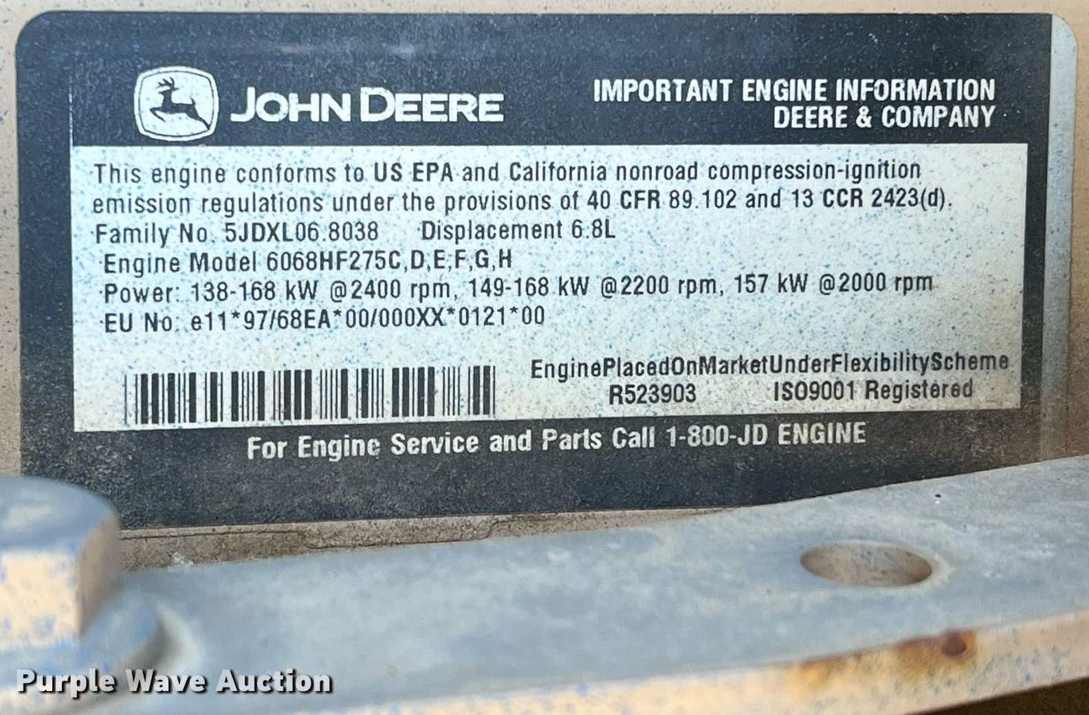 Gorman Rupp PA6E60-6068H centrifugal pump. Hours: 777 on meter, Serial: 1346346. Engine John Deere, Displacement: 6.8L, Cylinders: 6, Fuel type: Diesel. Features Trailer 15' L X 79' W, Outlet: 8". Tires Size: 225/75R15. Notes Seals may need replaced. This is worksite support equipment and will not come with a title. Transfer of ownership documentation will be a bill of sale. M CO CONSTRUCTION INC. 316 County Road 3672. Springtown, TX 76082