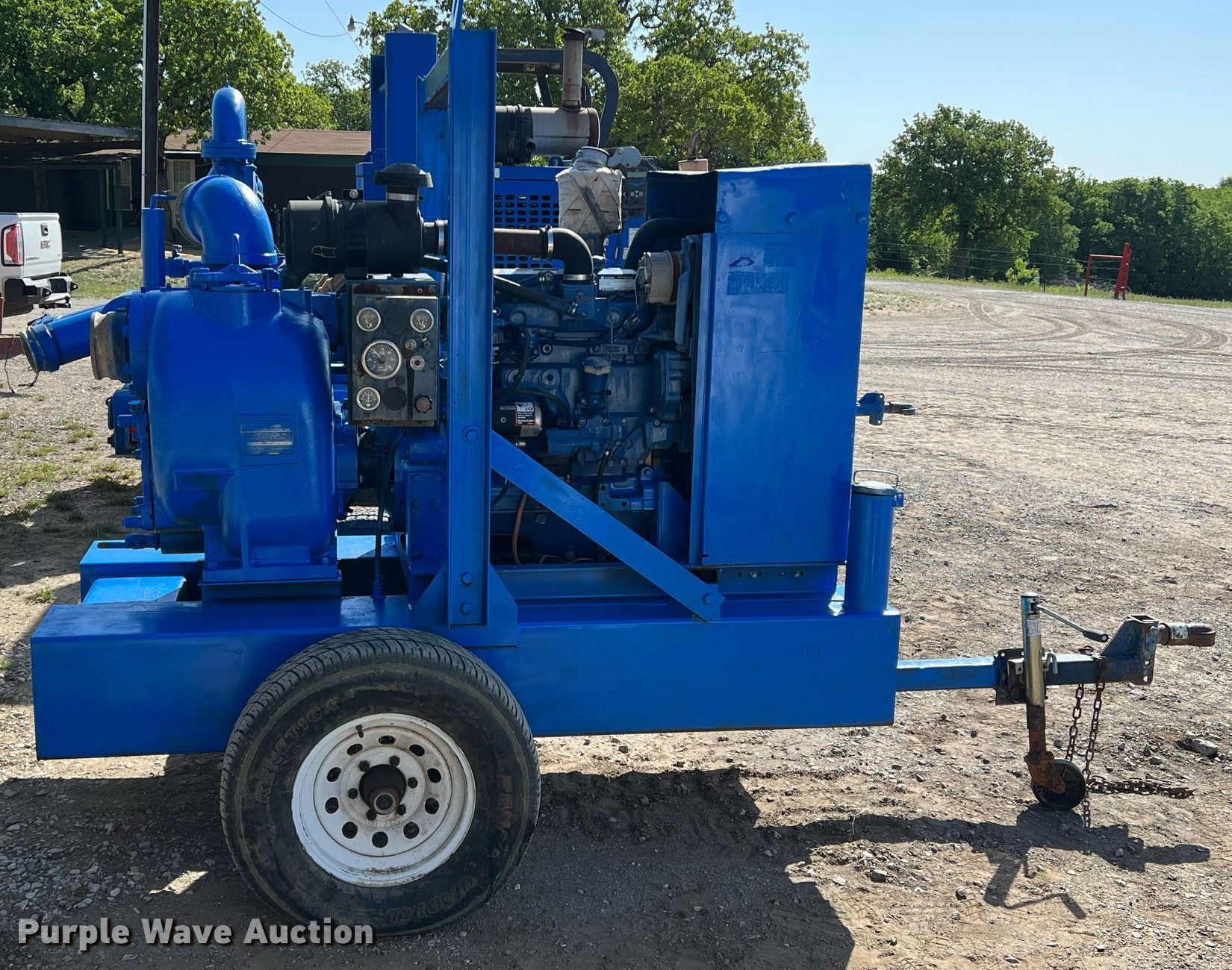 Gorman Rupp T6A60S centrifugal pump. Hours: 1,697 on meter, Serial: 1459875. Engine John Deere, Cylinders: 4, Fuel type: Diesel. Features 11' L x 68" W, Outlet: 6". Tires Size: 205/75R15. M CO CONSTRUCTION INC. 316 County Road 3672. Springtown, TX 76082