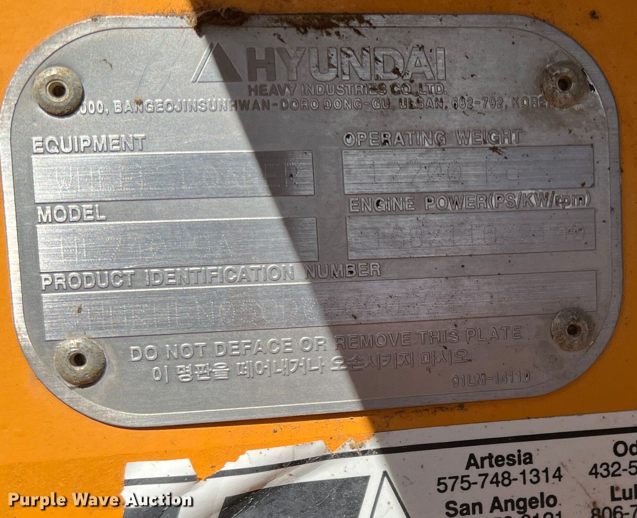 Hyundai HL740-9A wheel loader. Hours: Unknown, Serial: HHKHLN050d0000032. Engine Cylinders: 6, Fuel type: Diesel. Transmission Powershift, 4F - 4R. Operators station Enclosed cab, AC, Heat, Bucket controls: Joystick. Features Bucket Hyundai HL740-9, Capacity: 3.01 cu.yd., Width: 102", Cutting edge: Bolt-on, Forks Length: 96". Tires Size: 20.5-25. Notes Glass cracked, Display issues. M CO CONSTRUCTION INC. 316 County Road 3672. Springtown, TX 76082
