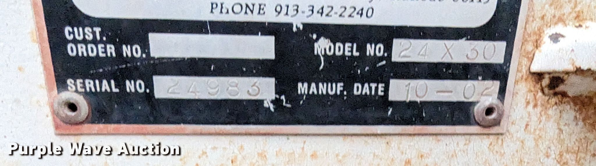 Purple Wave is selling a used Conveyor in Oklahoma. This item is a 2003 Peerless 24X30 conveyor with the following: Serial: 24983
